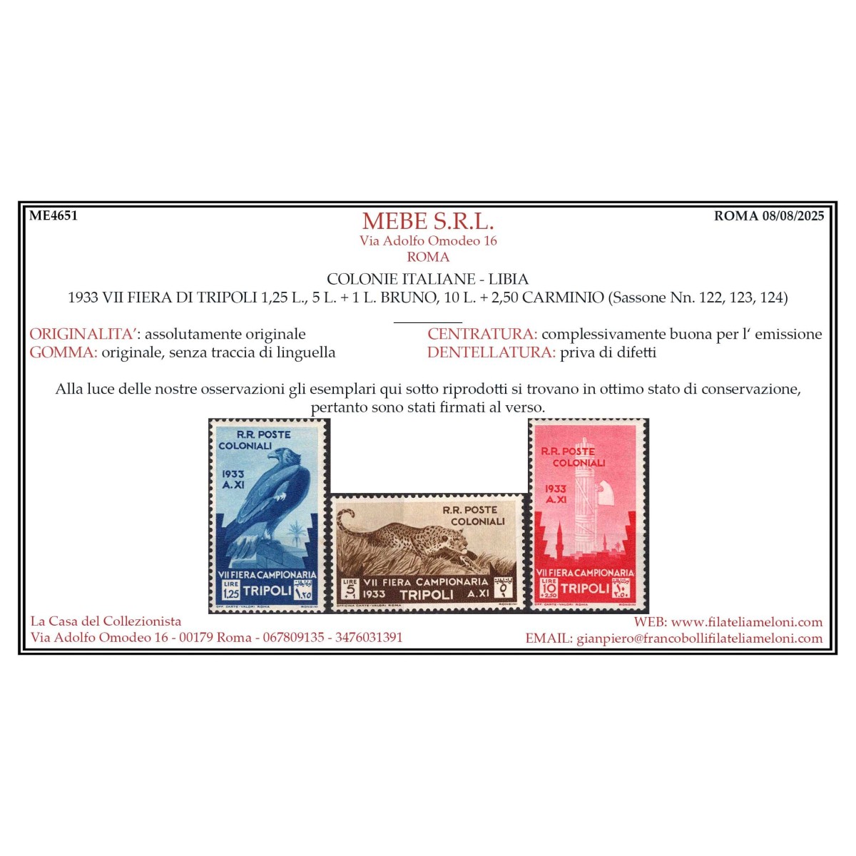COLONIE 1934 EMISSIONI GENARALI FIERA DI...