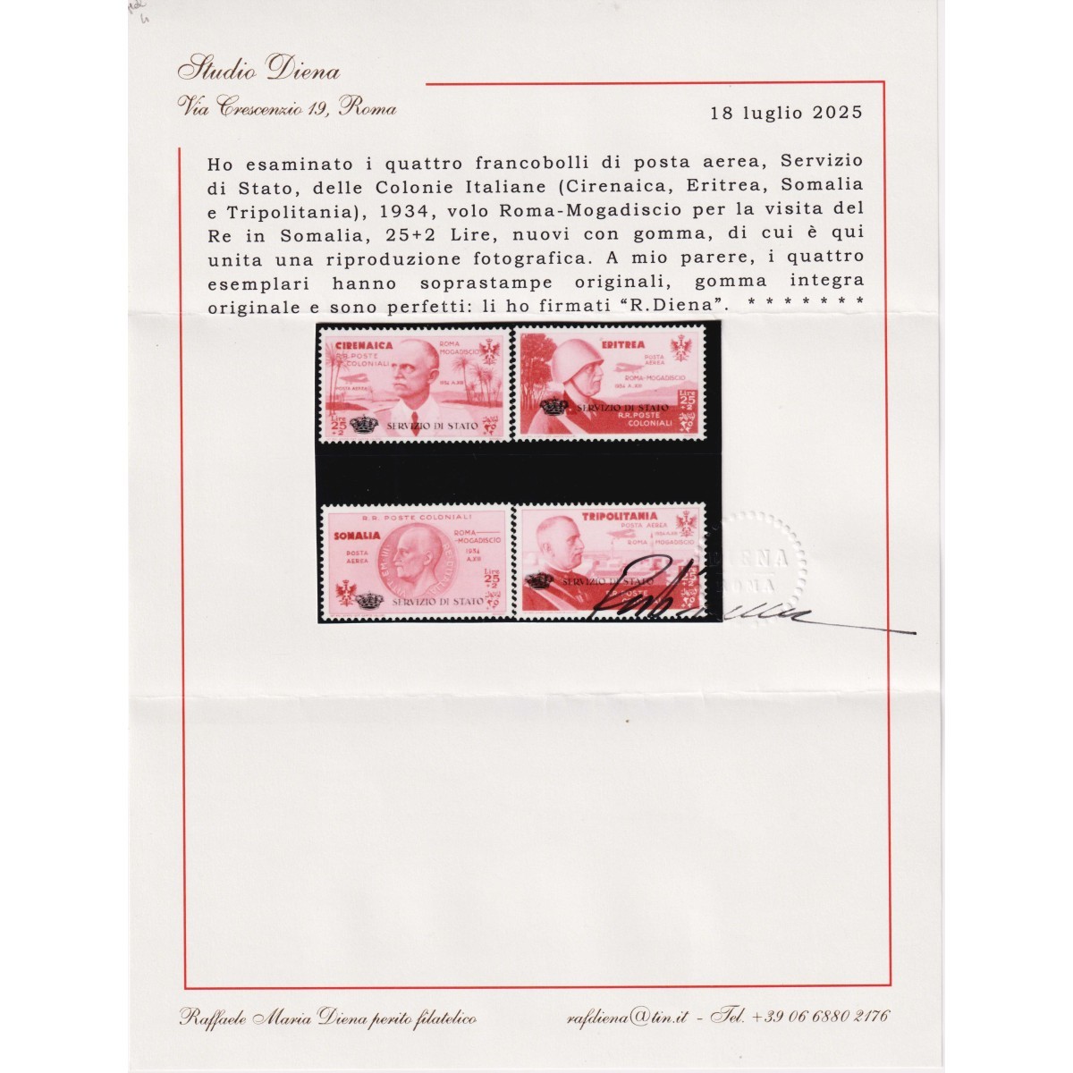 COLONIE GIRO DELLE CORONCINE 4 V. G.I MNH** CERT.