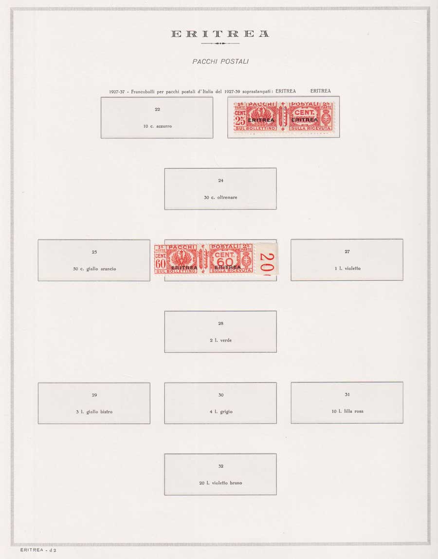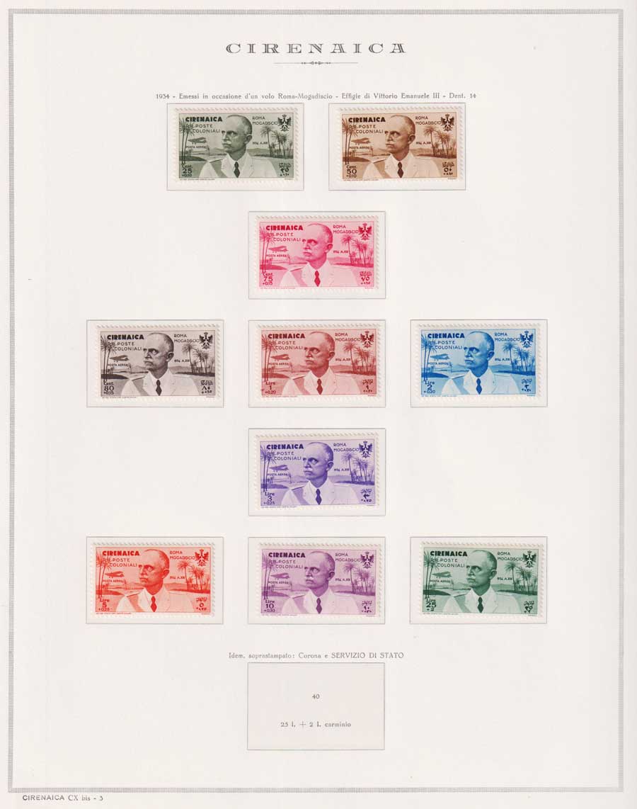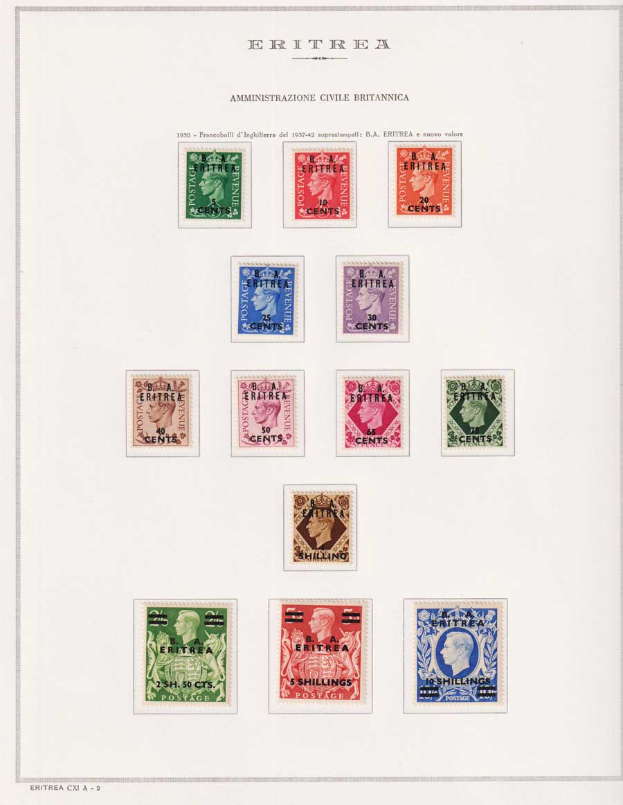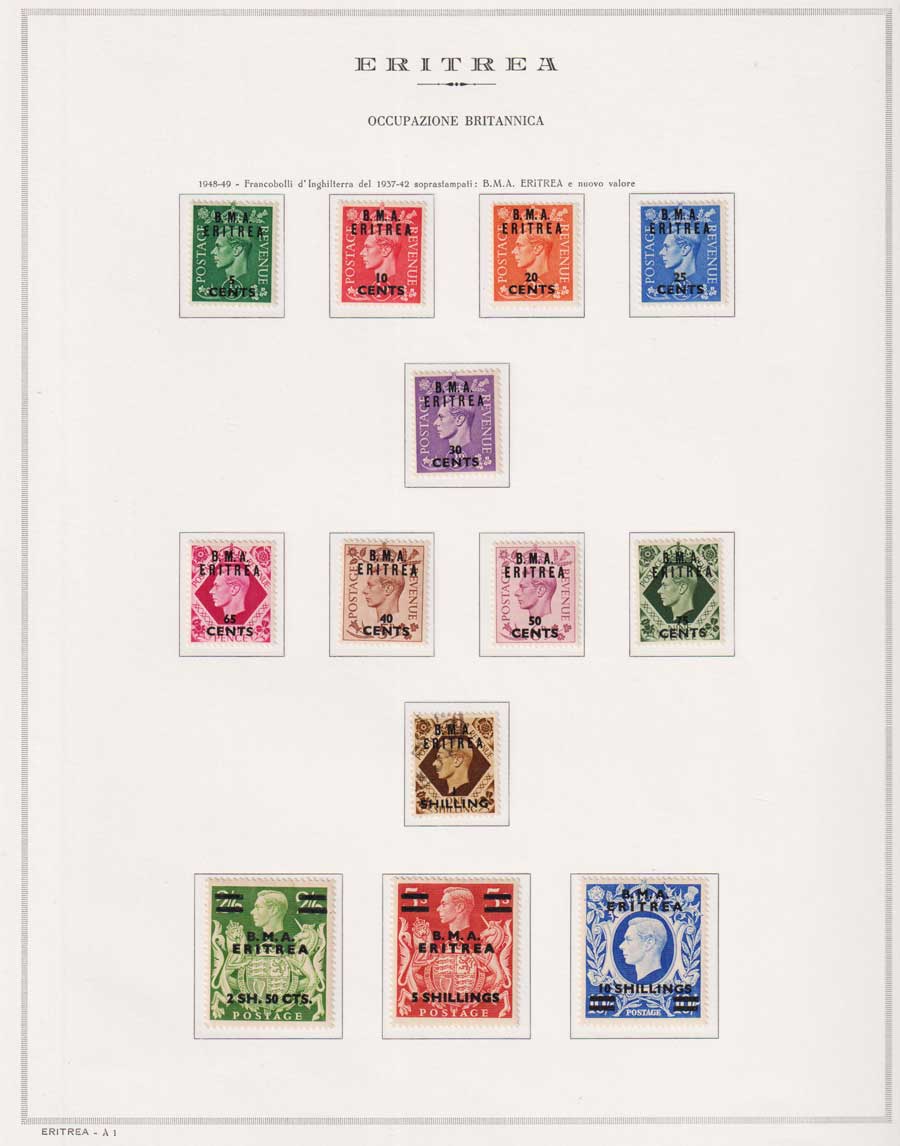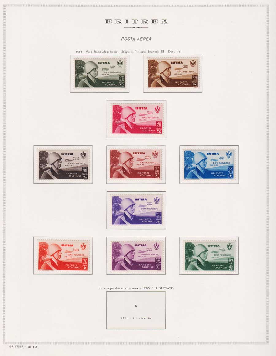 COLLEZIONE AVANZATA DI ERITREA E CIRENAICA SU ALBUM E FOGLI MARINI CON CUSTODIA. TUTTI I FRANCOBOLLI PRESENTI NELLA RACCOLTA SONO VISIBILI NELLE SCANSIONI, SONO IN OTTIMO STATO DI CONSERVAZIONE E PREVALENTEMENTE CON GOMMA ORIGINALE. VALORE DI CATALOGO 20600 CIRCA.