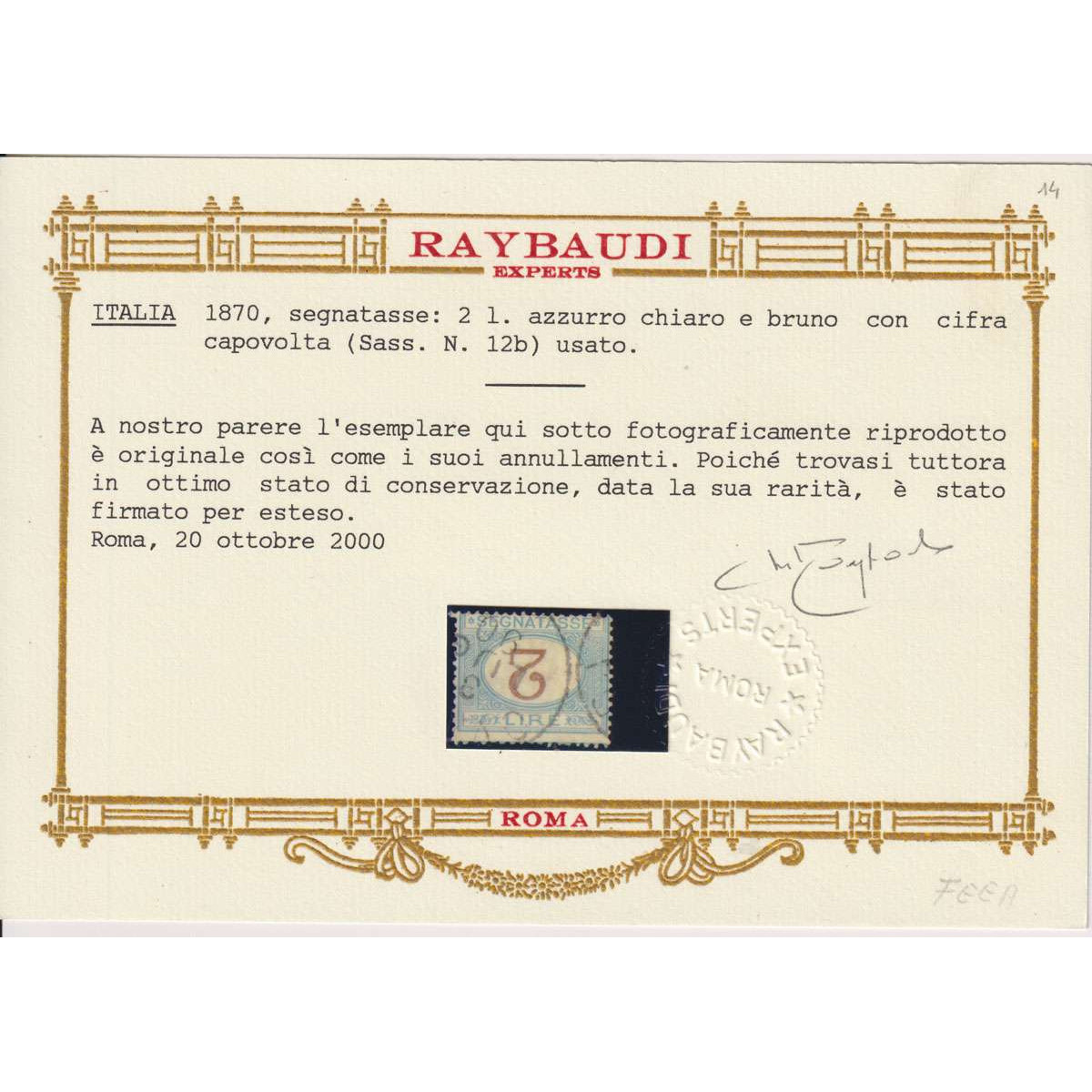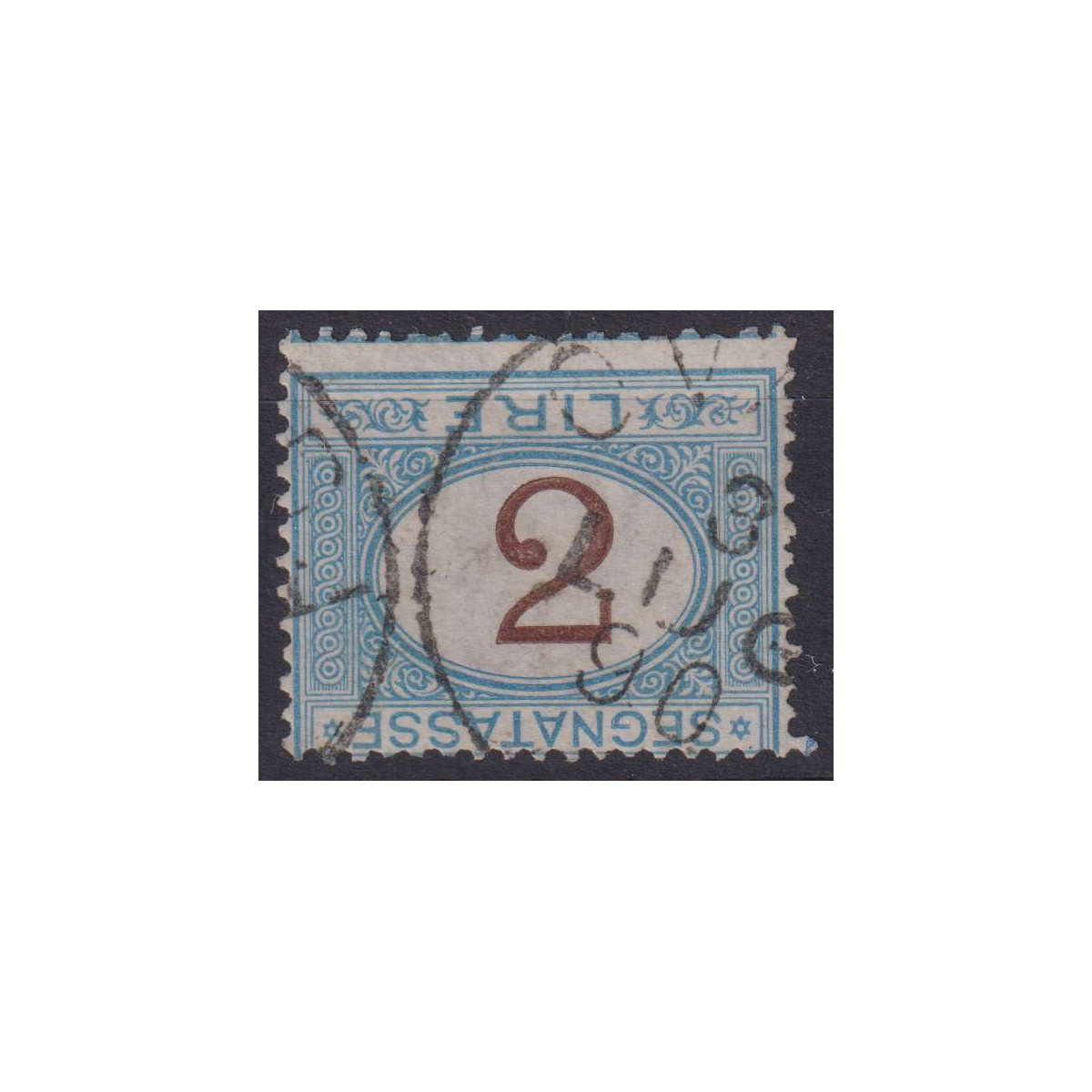 REGNO D'ITALIA 1870-74 SEGNATASSE 2 LIRE VARIETA' CIFRA CAPOVOLTA N.12b US CERT.
