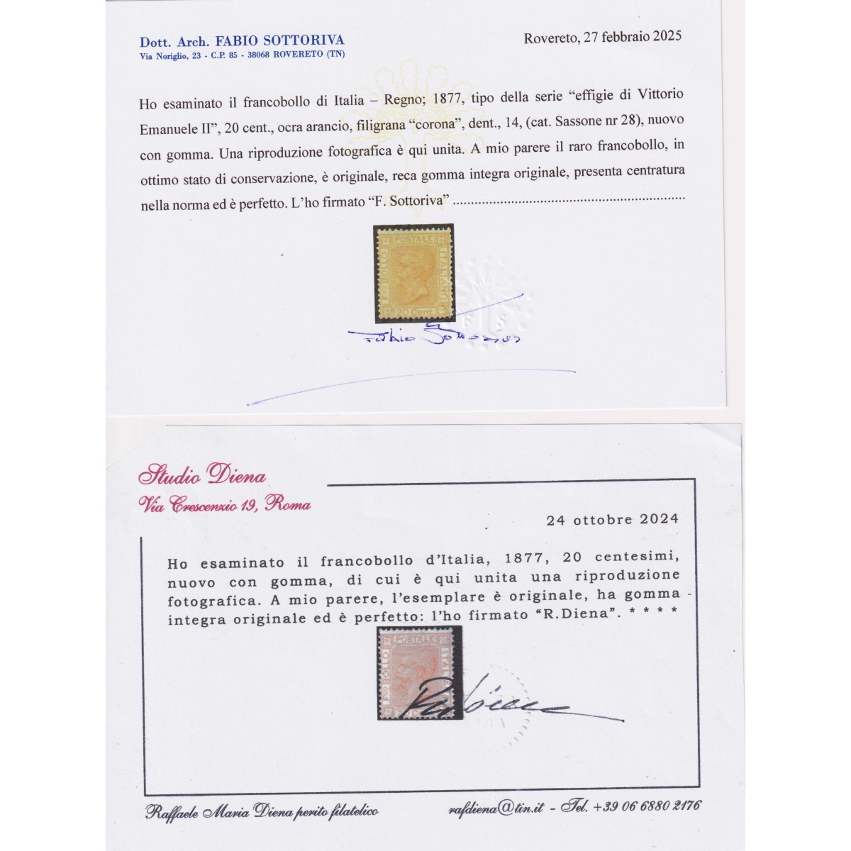 REGNO 1862 20 CENTESIMI N.2 G.I MNH** CENTRATO