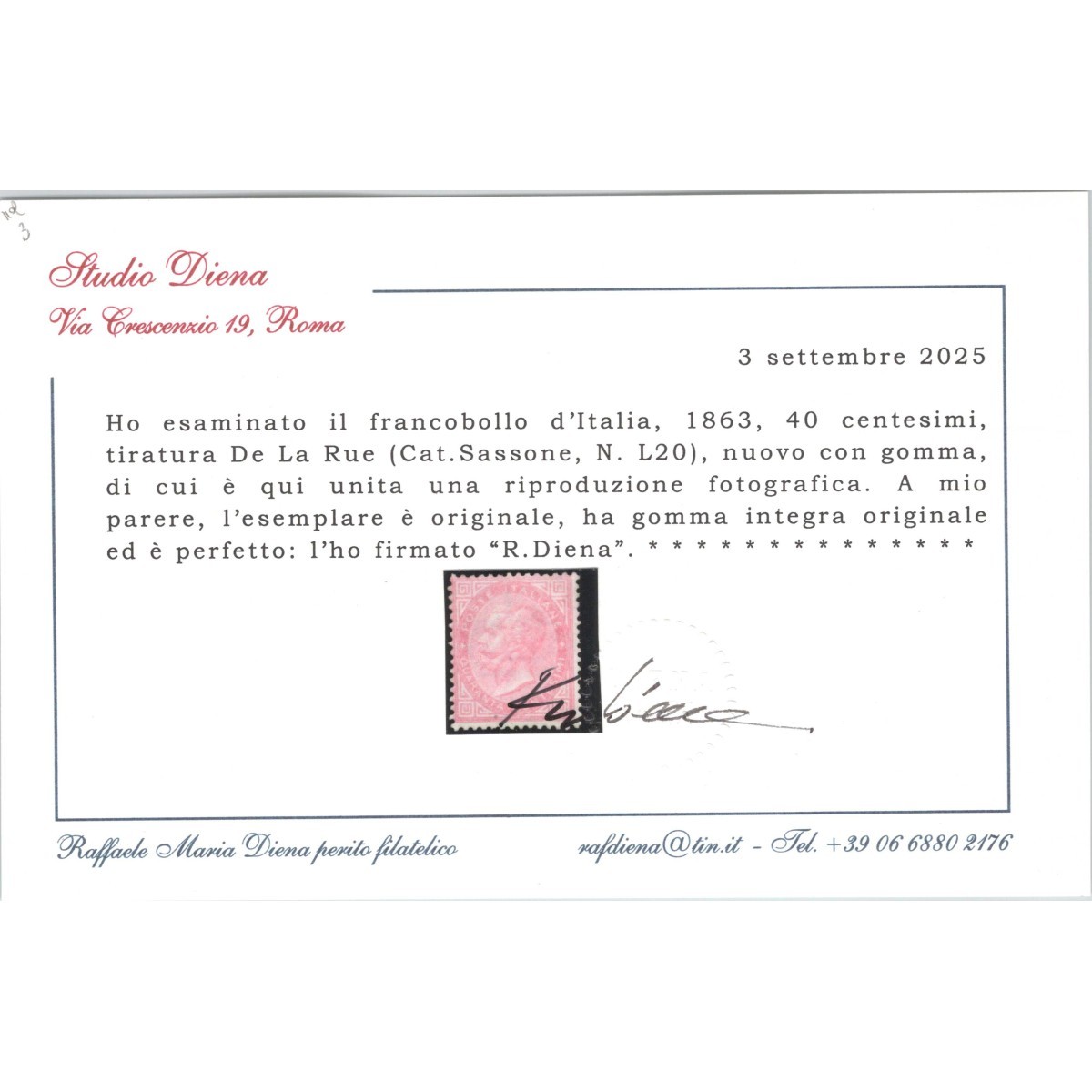 REGNO D'ITALIA 1863 15 CENTESIMI MATRAIRE GOMMA...