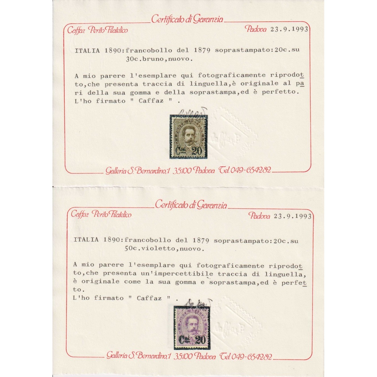 LIEVI TRACCE DI LINGUELLA CERTIFICATO CAFFAZ E BOLAFFI