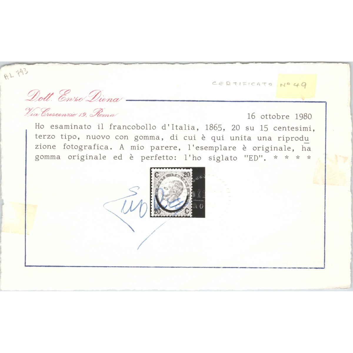 PROBABILMENTE UNICA CERTIFICATO RAYBAUDI “ORO” E DIENA