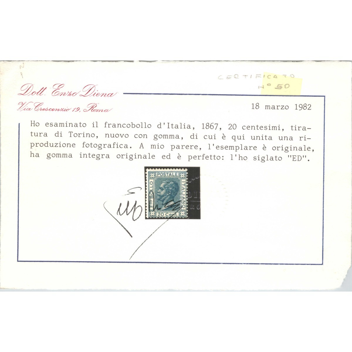 RARO BORDO DI FOGLIO PERIZIATO TERRACHINI CAT. 1500 EUR