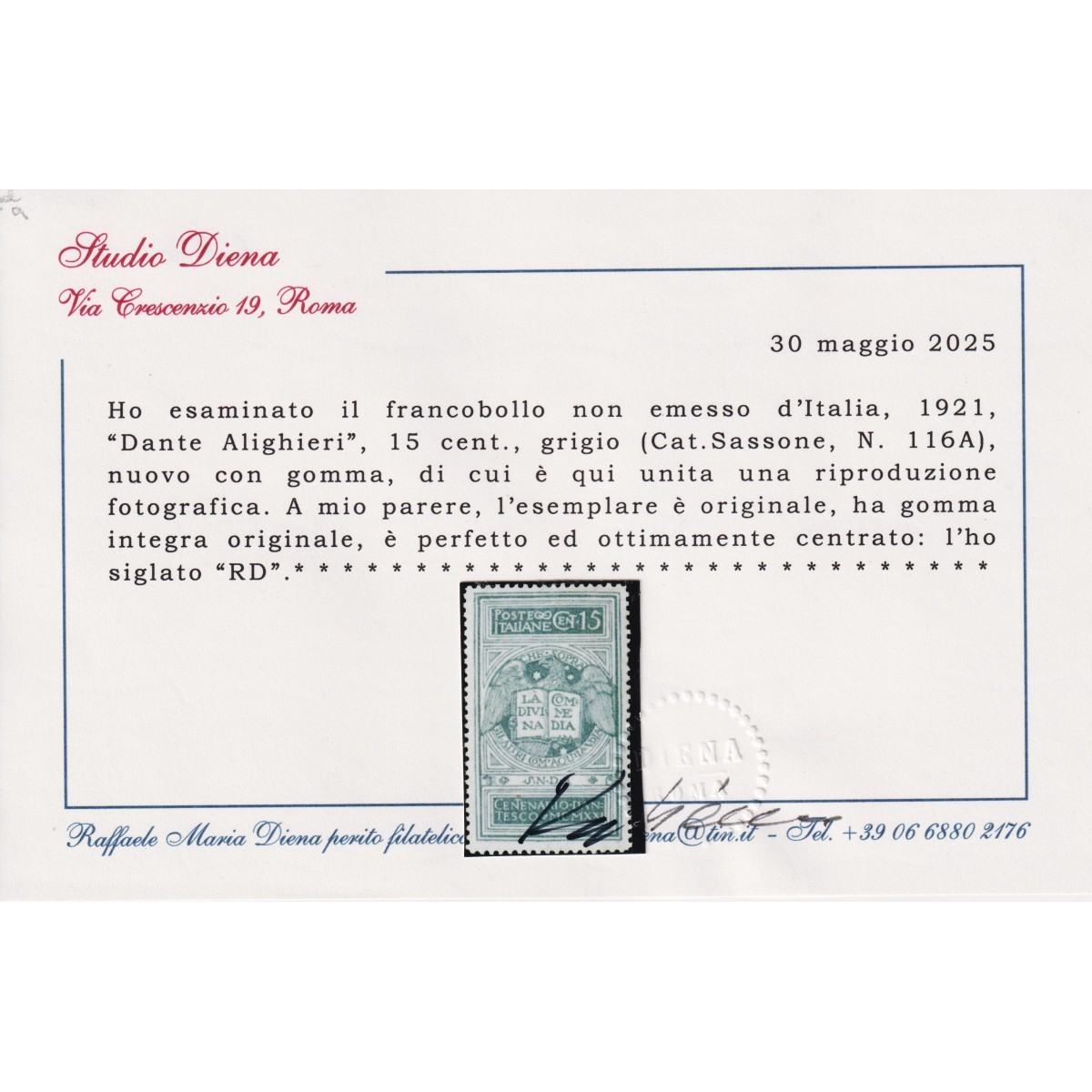 REGNO 1921 DANTE 25 CENTESIMI VARIETA' G.O MH*