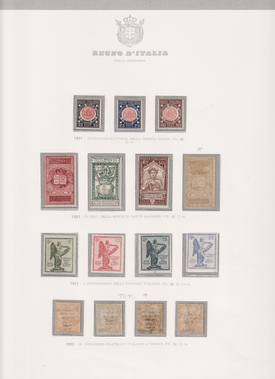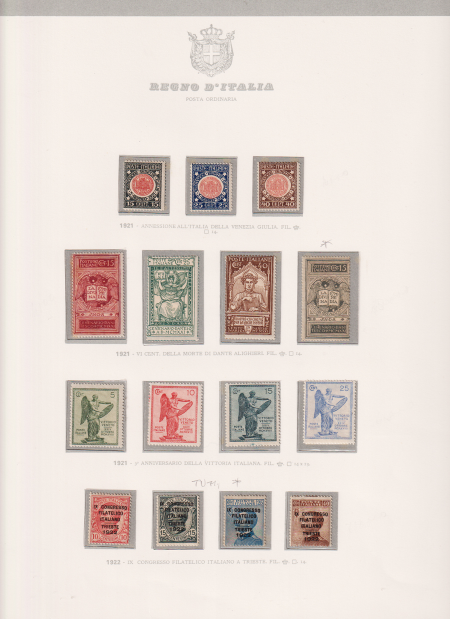 COLLEZIONE AVANZATA DEL REGNO D'ITALIA SU ALBUM E FOGLI BOLAFFI COMPRESA CUSTODIA. TUTTI I FRANCOBOLLI PRESENTI NELLA RACCOLTA SONO VISIBILI NELLE SCANSIONI, SONO IN OTTIMO STATO DI CONSERVAZIONE E PREVALENTEMENTE CON GOMMA ORIGINALE. PRESENTI DIVERSI CERTIFICATI.