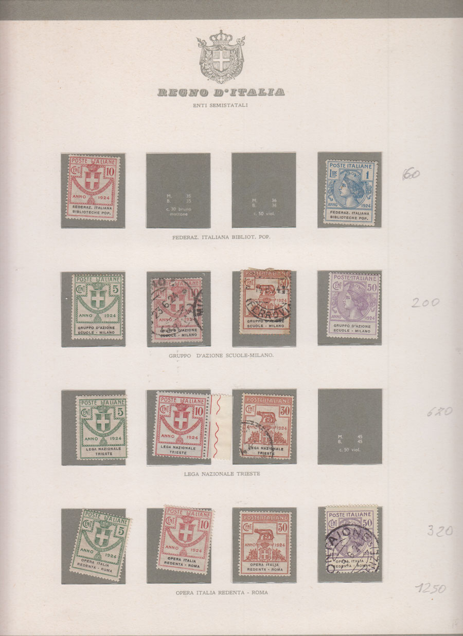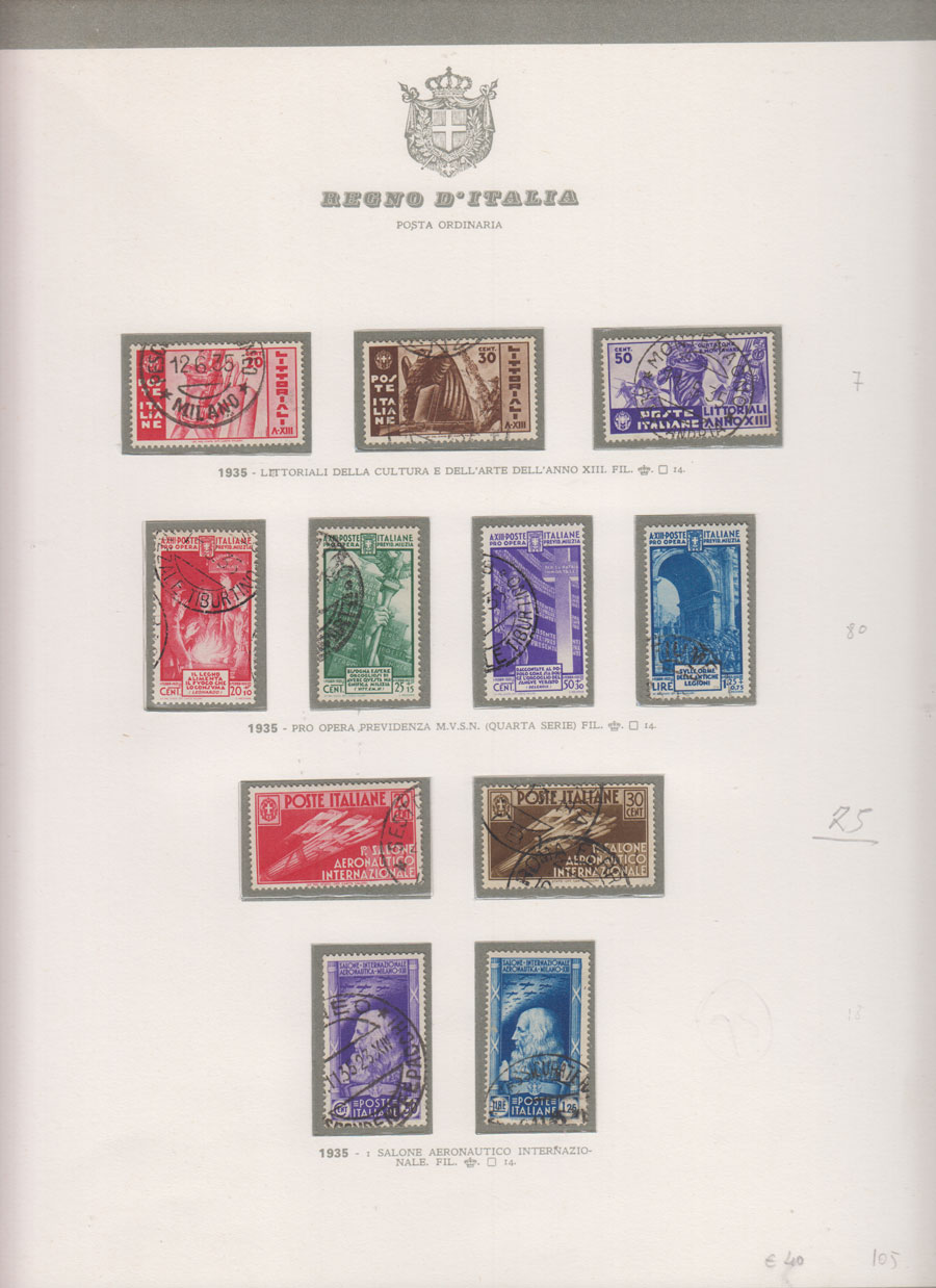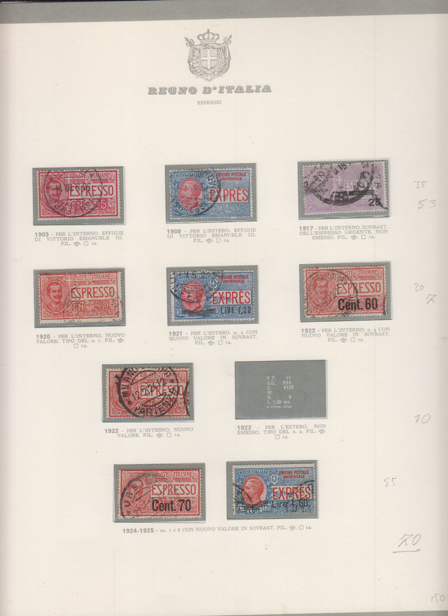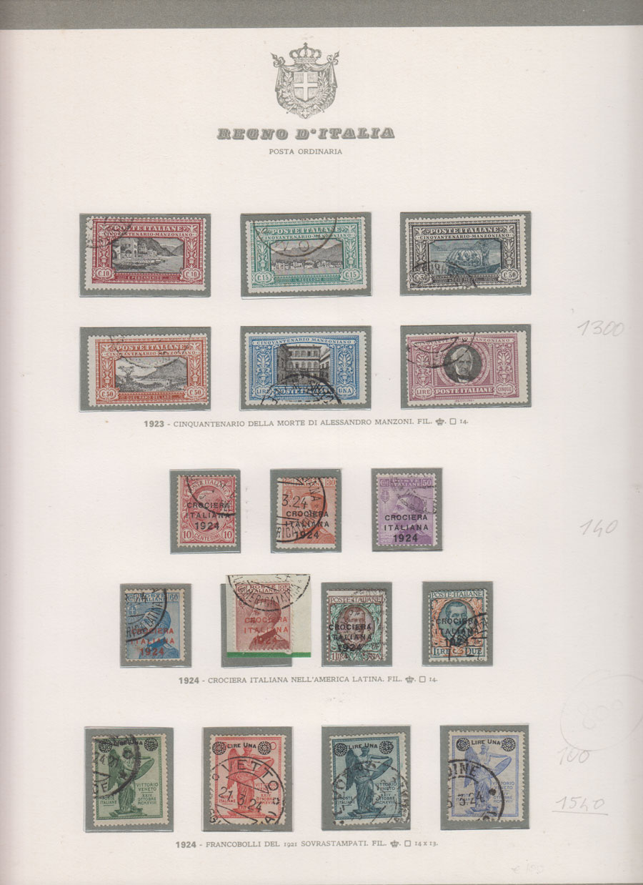 COLLEZIONE AVANZATA DEL REGNO D'ITALIA SU ALBUM E FOGLI BOLAFFI COMPRESA CUSTODIA. TUTTI I FRANCOBOLLI PRESENTI NELLA RACCOLTA SONO VISIBILI NELLE SCANSIONI, SONO IN OTTIMO STATO DI CONSERVAZIONE E PREVALENTEMENTE USATI.