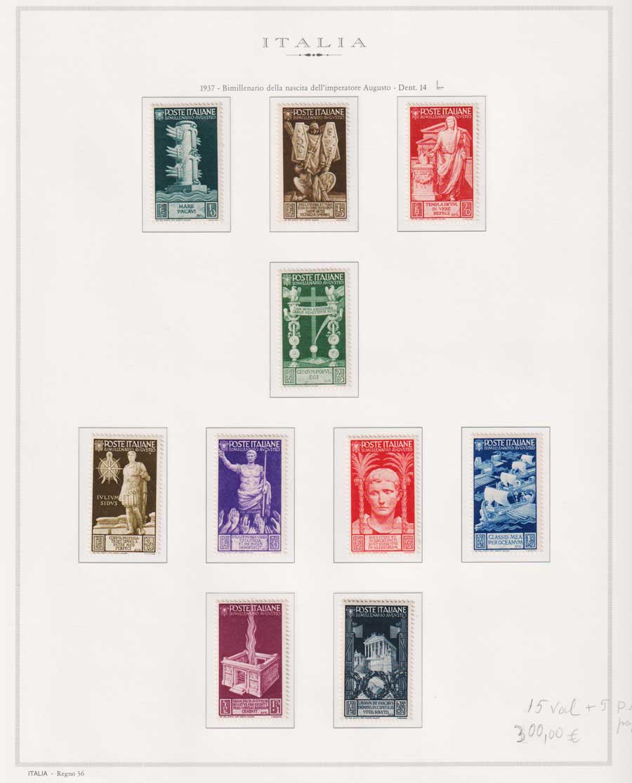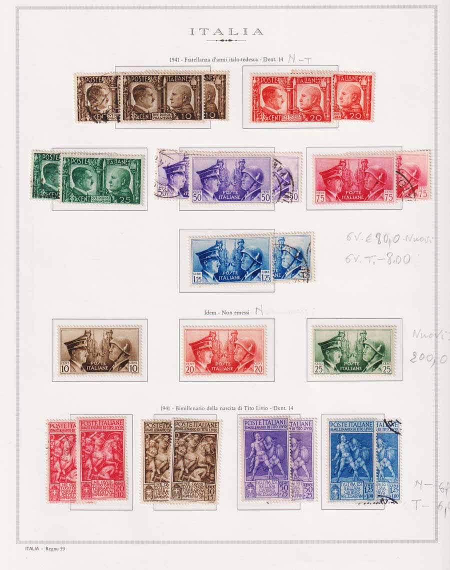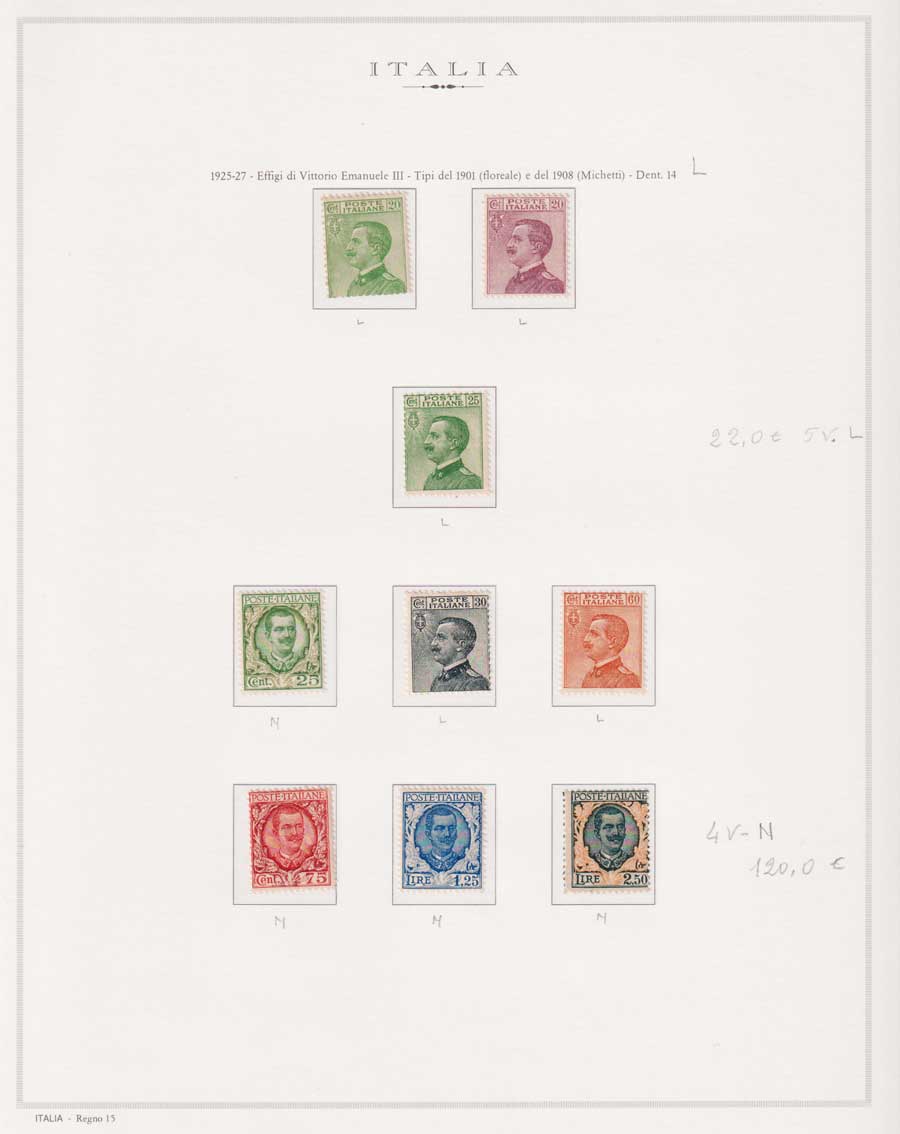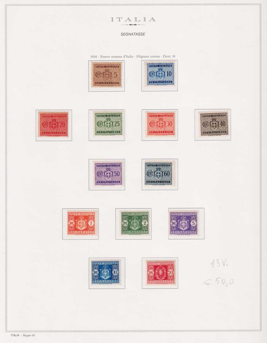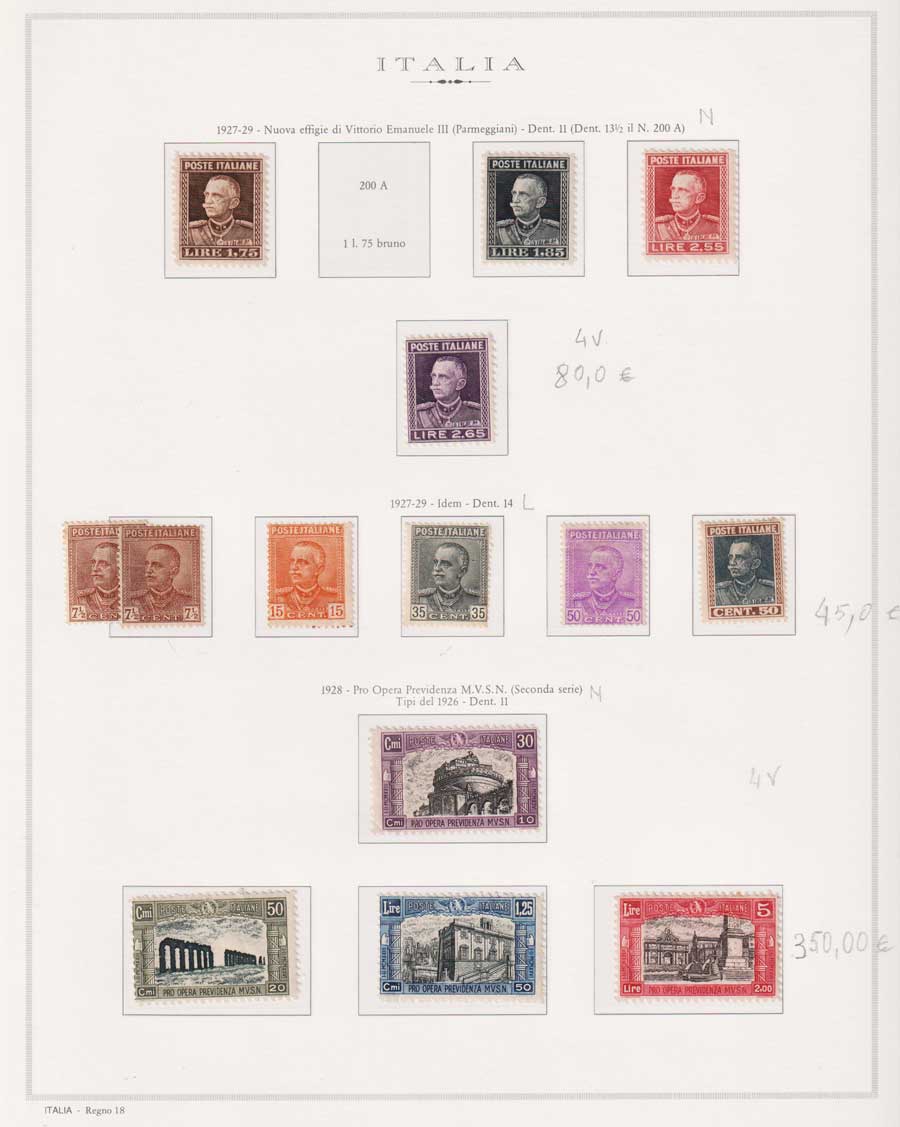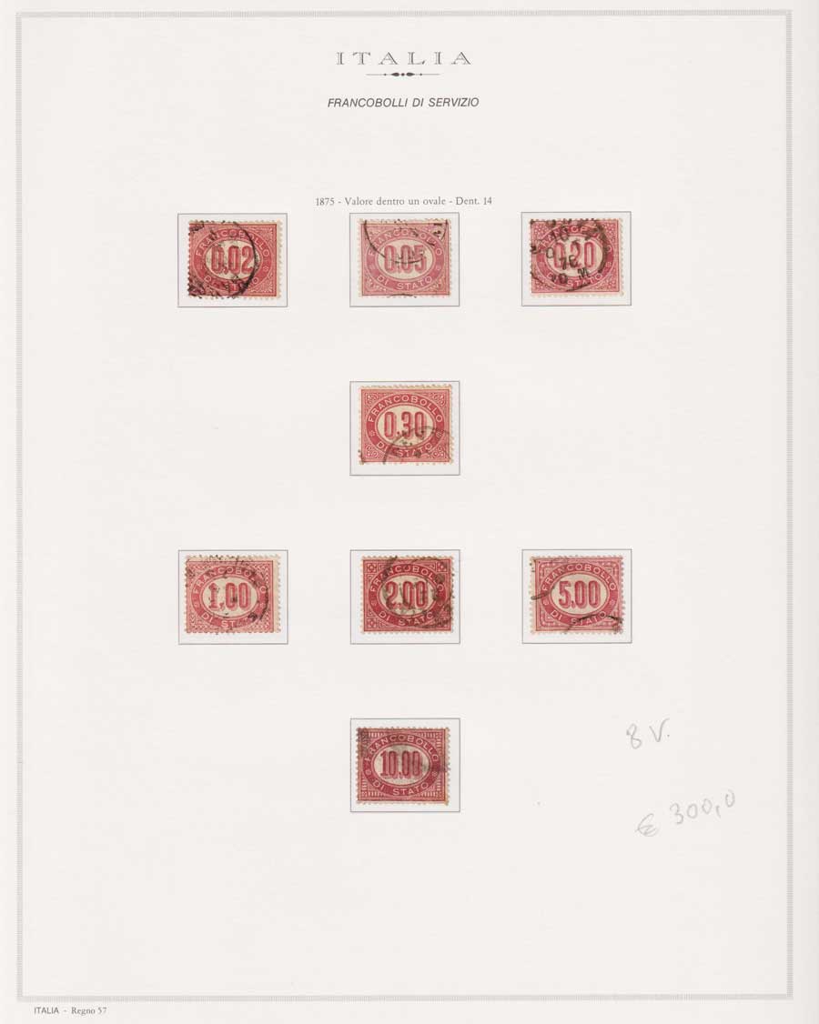COLLEZIONE DEL REGNO D'ITALIA DAL 1862 AL 1943 COMPRESI ALCUNI SERVIZI SU ALBUM CON FOGLI MARINI COMPRESA CUSTODIA. TUTTI I FRANCOBOLLI PRESENTI NELLA RACCOLTA SONO VISIBILI NELLE SCANSIONI, SONO IN OTTIMO STATO DI CONSERVAZIONE E PREVALENTEMENTE CON GOMMA ORIGINALE (CONTRASSEGNATI DALLA LETTERA L). I FRANCOBOLLI O LE SERIE CONTRASSEGNATE CON LA LETTERA “N” SONO DA RITENERSI CON GOMMA INTEGRA SENZA TRACCIA DI LINGUELLA.