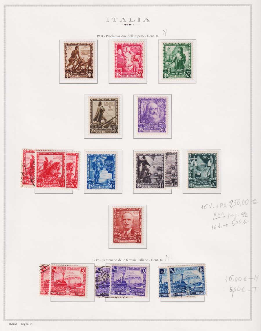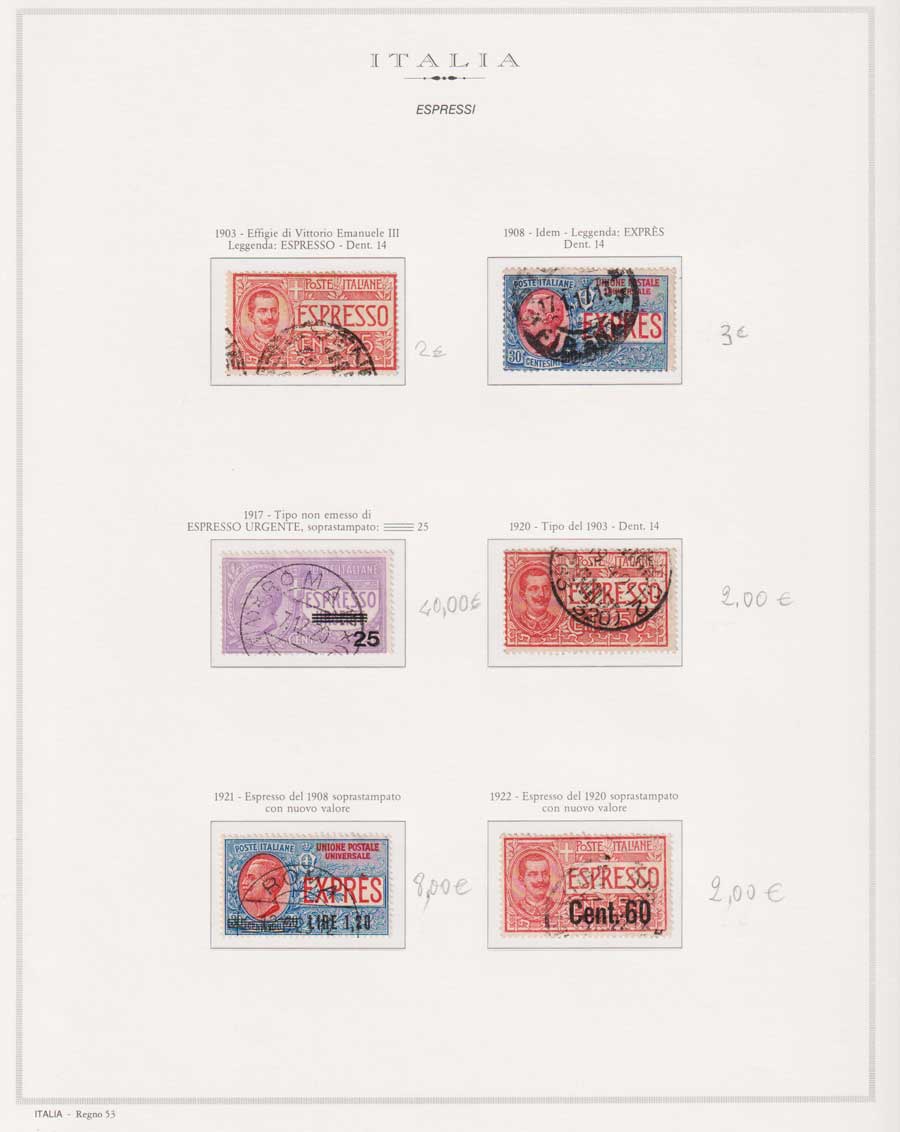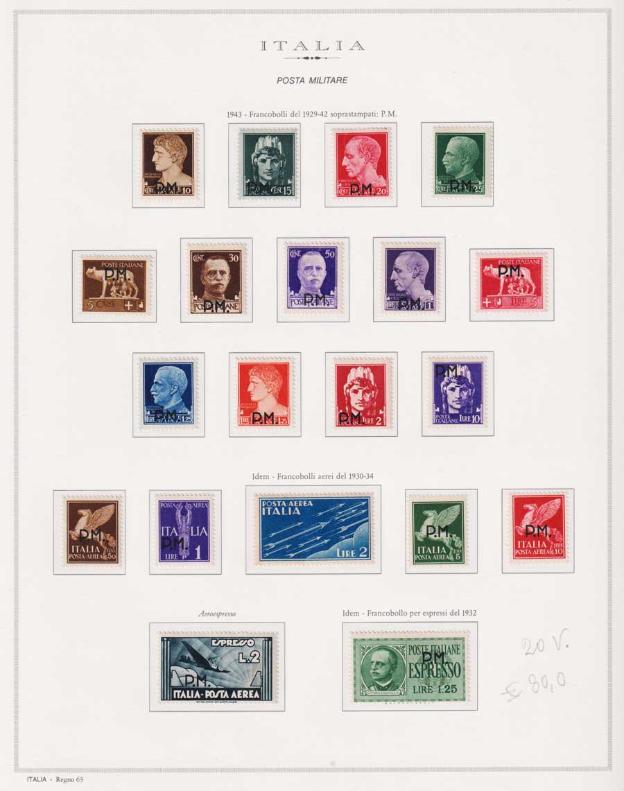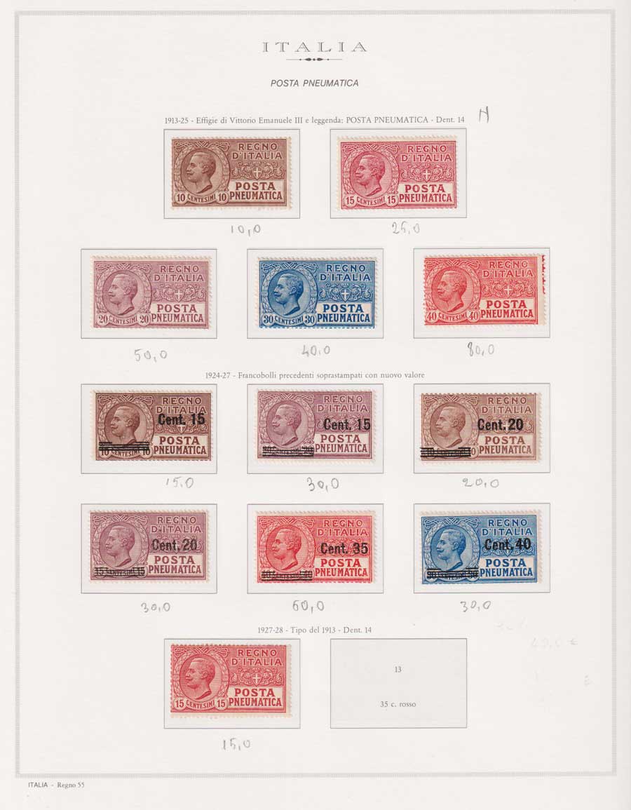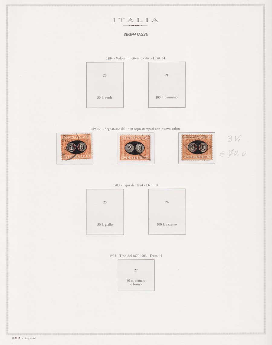 COLLEZIONE DEL REGNO D'ITALIA DAL 1862 AL 1943 COMPRESI ALCUNI SERVIZI SU ALBUM CON FOGLI MARINI COMPRESA CUSTODIA. TUTTI I FRANCOBOLLI PRESENTI NELLA RACCOLTA SONO VISIBILI NELLE SCANSIONI, SONO IN OTTIMO STATO DI CONSERVAZIONE E PREVALENTEMENTE CON GOMMA ORIGINALE (CONTRASSEGNATI DALLA LETTERA L). I FRANCOBOLLI O LE SERIE CONTRASSEGNATE CON LA LETTERA “N” SONO DA RITENERSI CON GOMMA INTEGRA SENZA TRACCIA DI LINGUELLA.