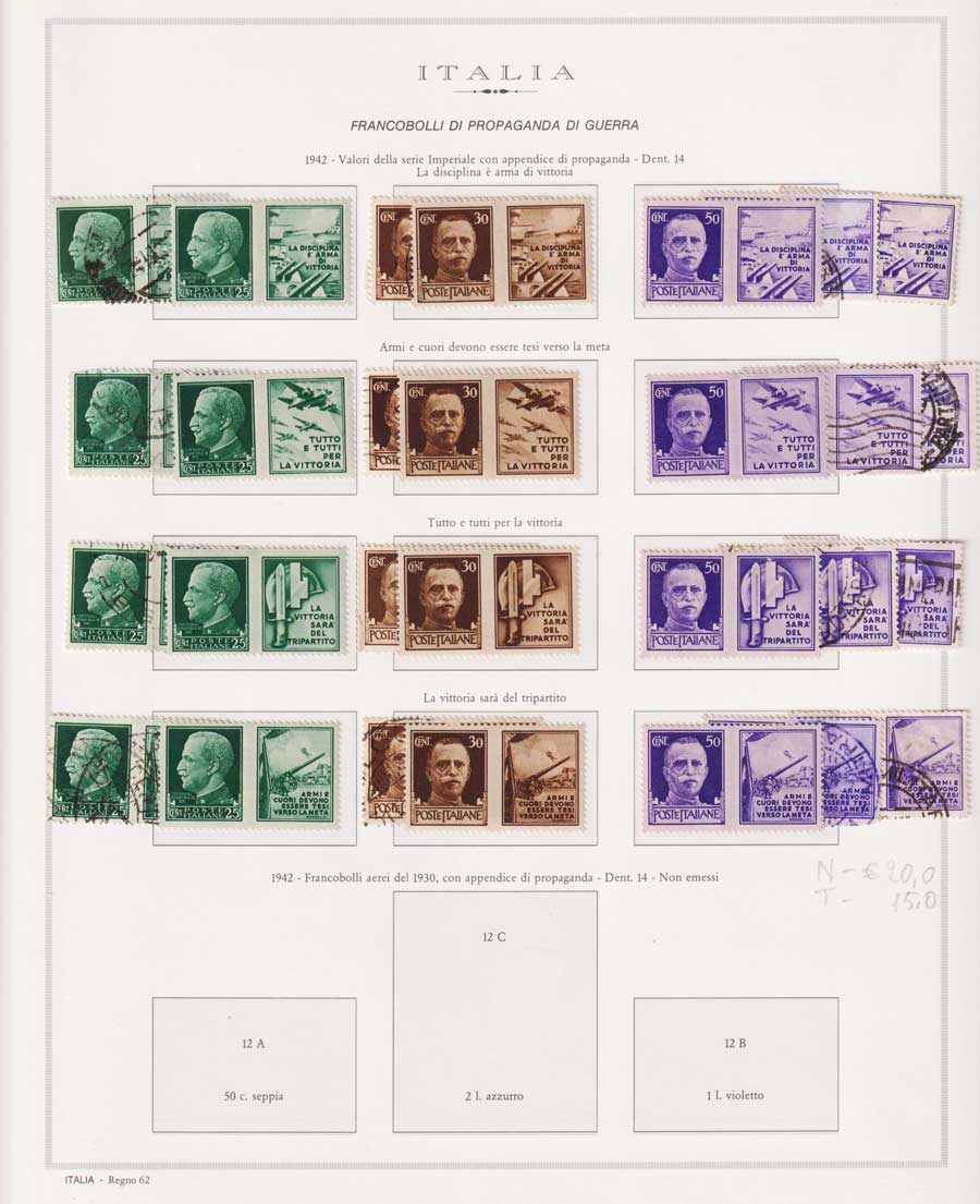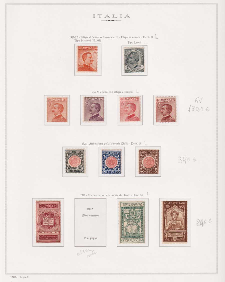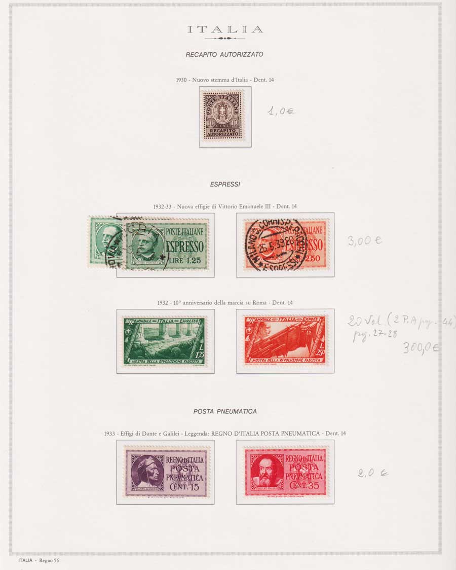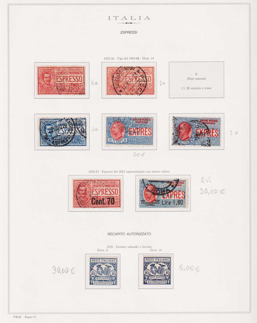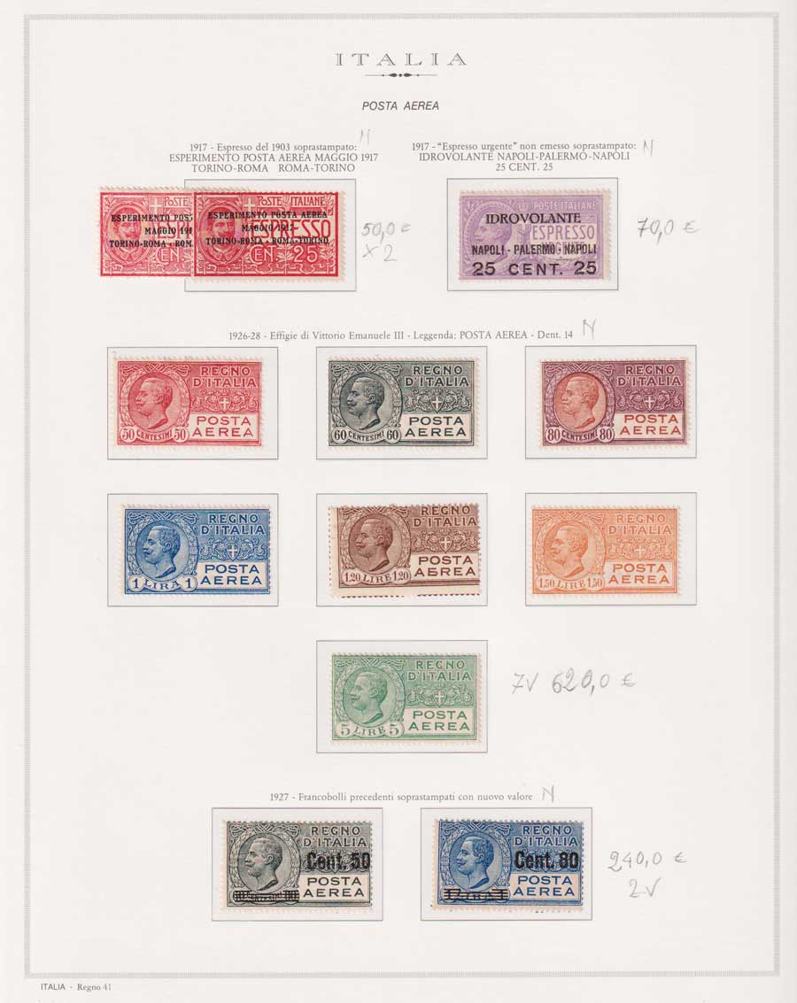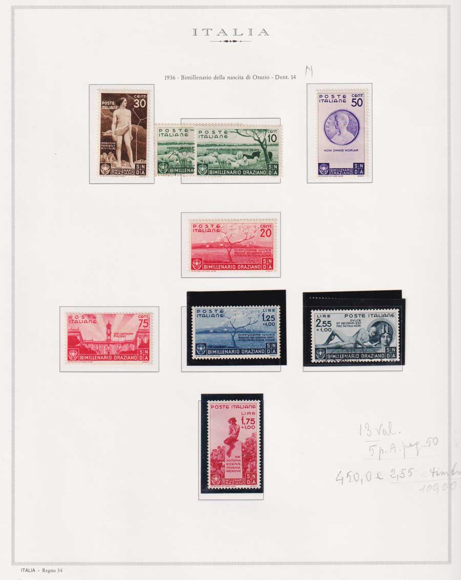 COLLEZIONE DEL REGNO D'ITALIA DAL 1862 AL 1943 COMPRESI ALCUNI SERVIZI SU ALBUM CON FOGLI MARINI COMPRESA CUSTODIA. TUTTI I FRANCOBOLLI PRESENTI NELLA RACCOLTA SONO VISIBILI NELLE SCANSIONI, SONO IN OTTIMO STATO DI CONSERVAZIONE E PREVALENTEMENTE CON GOMMA ORIGINALE (CONTRASSEGNATI DALLA LETTERA L). I FRANCOBOLLI O LE SERIE CONTRASSEGNATE CON LA LETTERA “N” SONO DA RITENERSI CON GOMMA INTEGRA SENZA TRACCIA DI LINGUELLA.