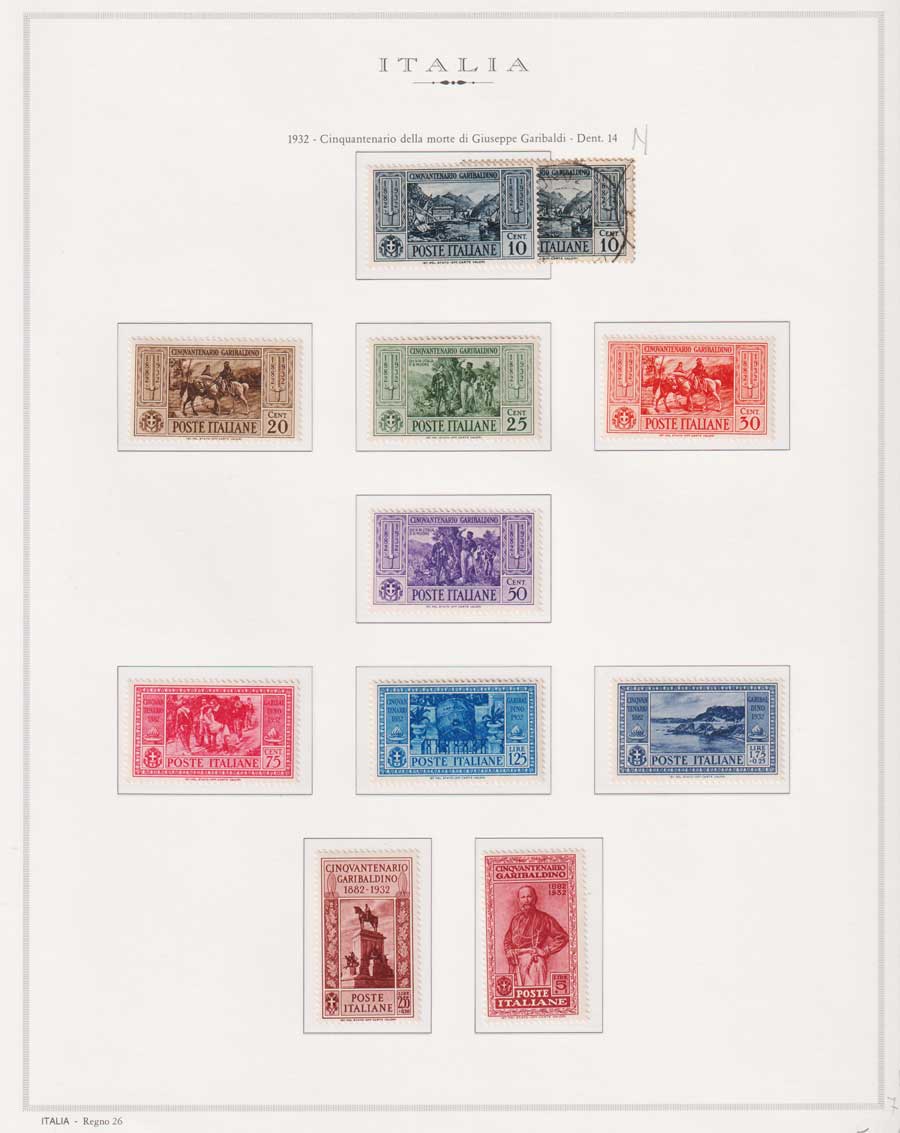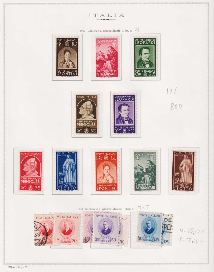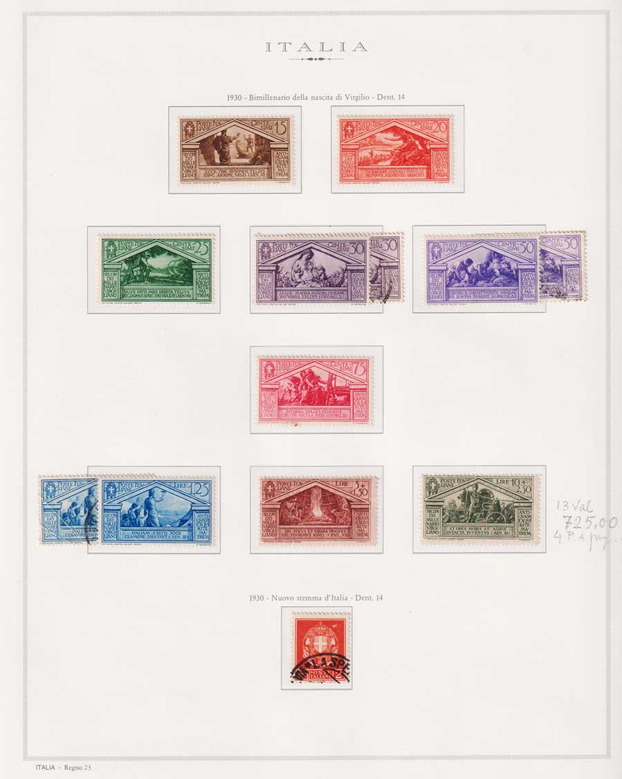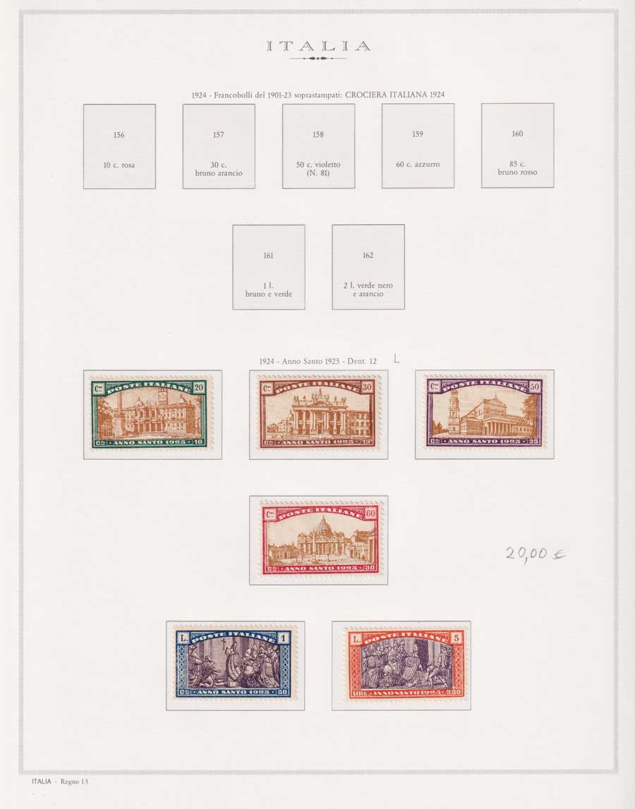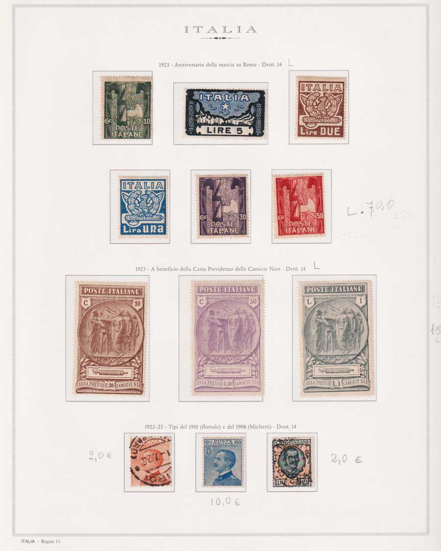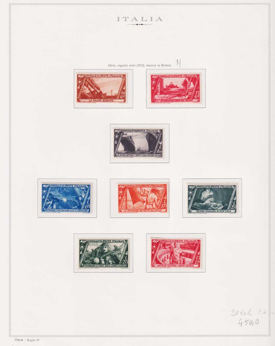 COLLEZIONE DEL REGNO D'ITALIA DAL 1862 AL 1943 COMPRESI ALCUNI SERVIZI SU ALBUM CON FOGLI MARINI COMPRESA CUSTODIA. TUTTI I FRANCOBOLLI PRESENTI NELLA RACCOLTA SONO VISIBILI NELLE SCANSIONI, SONO IN OTTIMO STATO DI CONSERVAZIONE E PREVALENTEMENTE CON GOMMA ORIGINALE (CONTRASSEGNATI DALLA LETTERA L). I FRANCOBOLLI O LE SERIE CONTRASSEGNATE CON LA LETTERA “N” SONO DA RITENERSI CON GOMMA INTEGRA SENZA TRACCIA DI LINGUELLA.