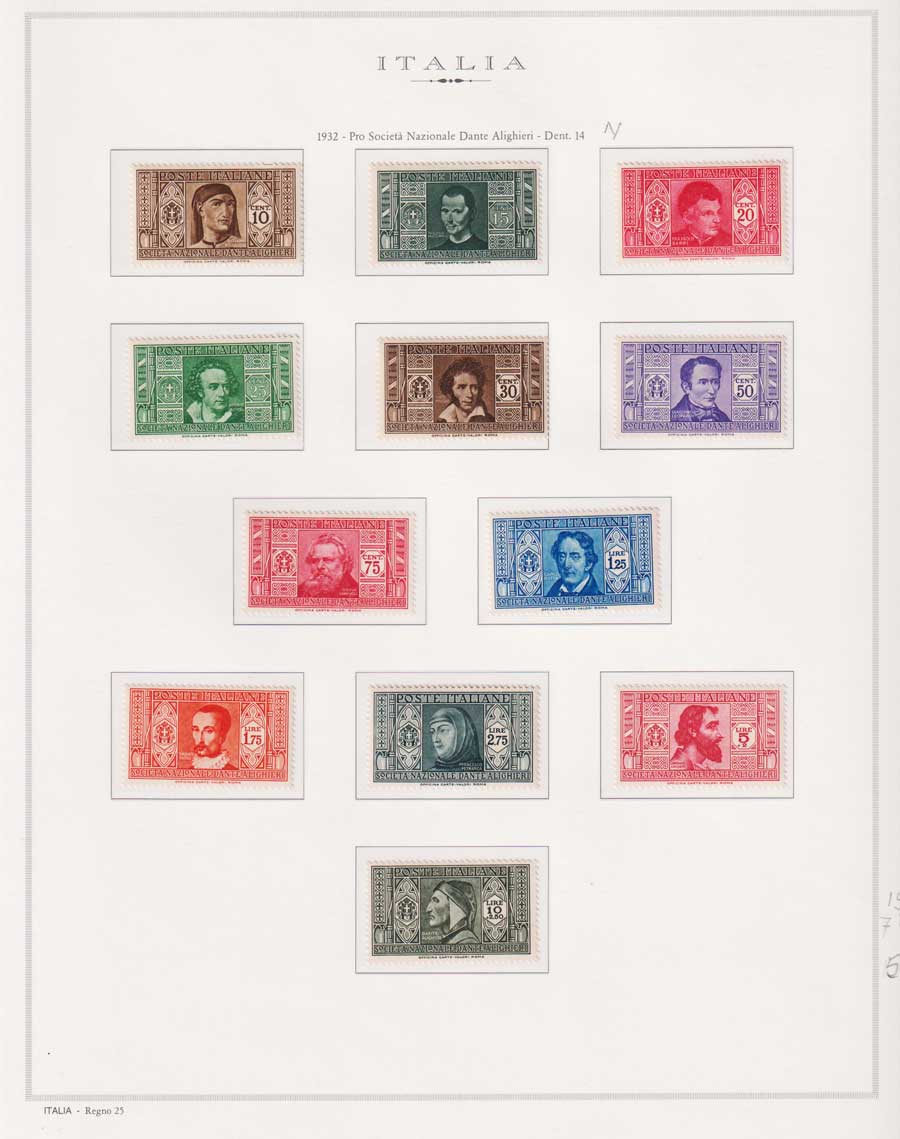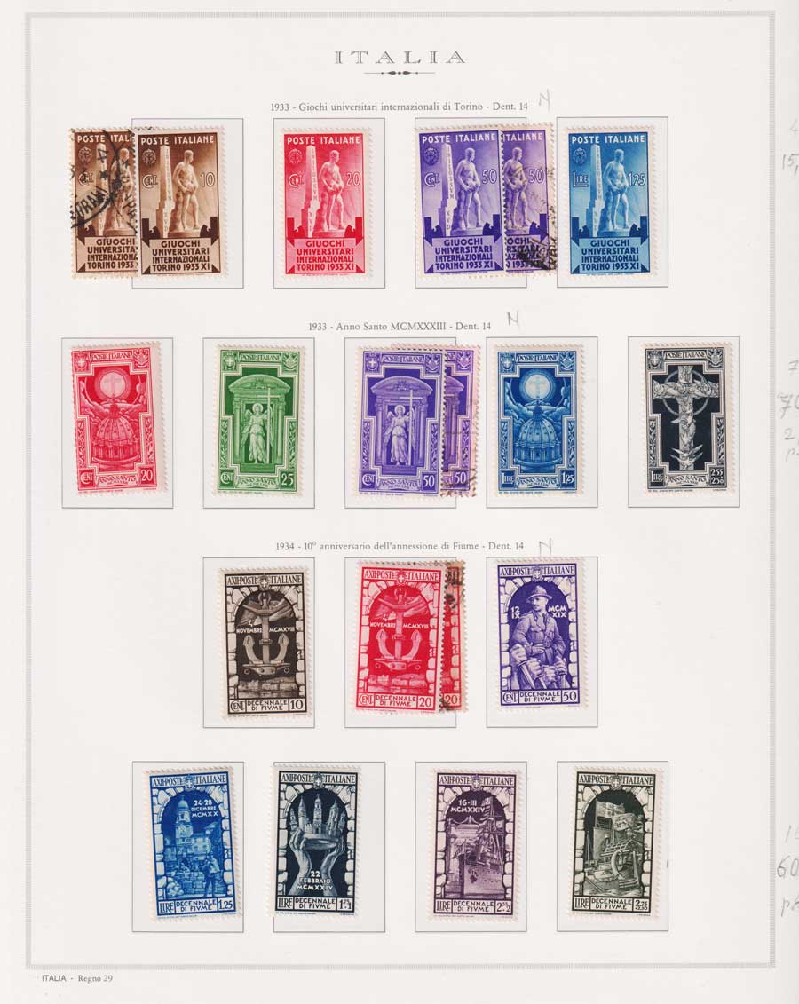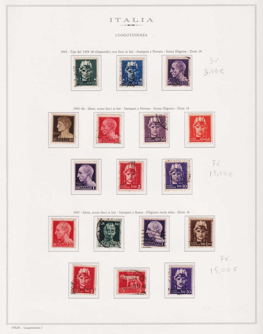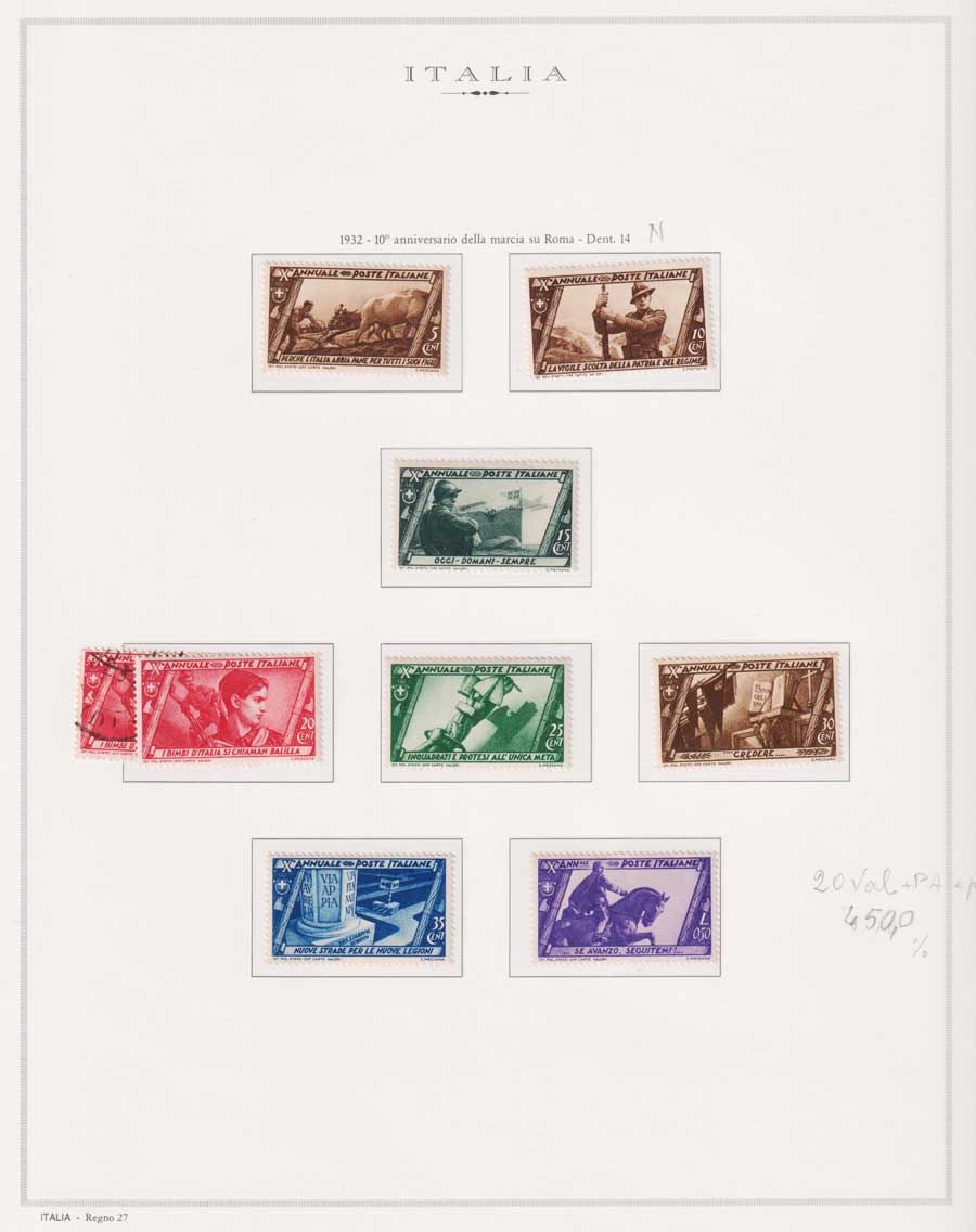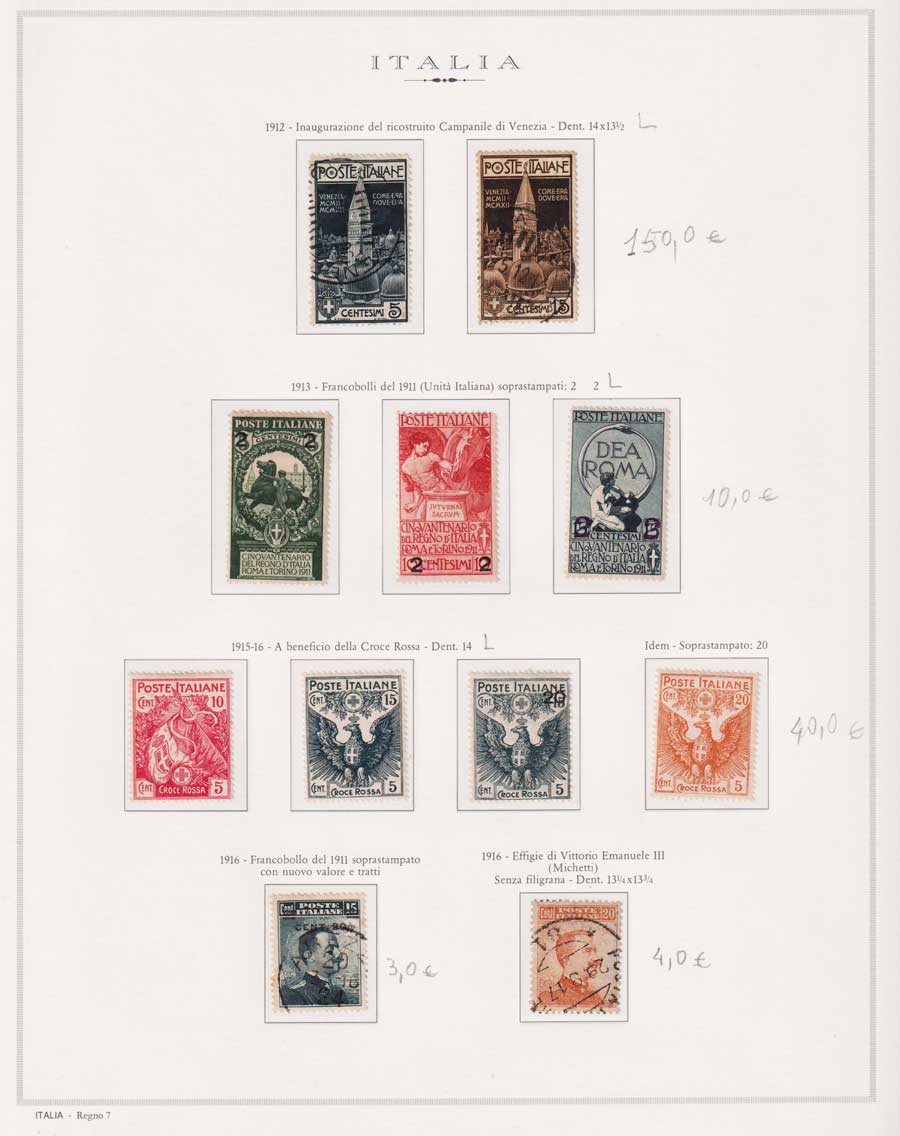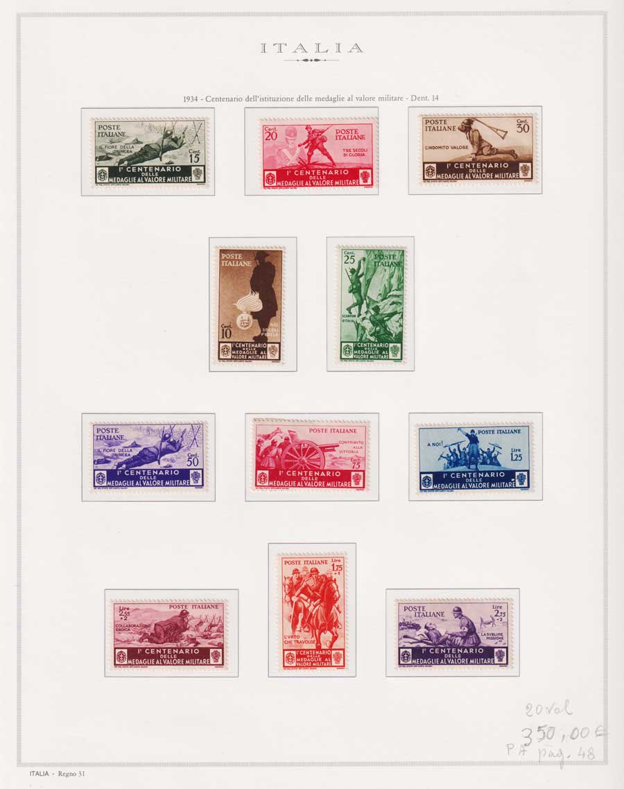 COLLEZIONE DEL REGNO D'ITALIA DAL 1862 AL 1943 COMPRESI ALCUNI SERVIZI SU ALBUM CON FOGLI MARINI COMPRESA CUSTODIA. TUTTI I FRANCOBOLLI PRESENTI NELLA RACCOLTA SONO VISIBILI NELLE SCANSIONI, SONO IN OTTIMO STATO DI CONSERVAZIONE E PREVALENTEMENTE CON GOMMA ORIGINALE (CONTRASSEGNATI DALLA LETTERA L). I FRANCOBOLLI O LE SERIE CONTRASSEGNATE CON LA LETTERA “N” SONO DA RITENERSI CON GOMMA INTEGRA SENZA TRACCIA DI LINGUELLA.