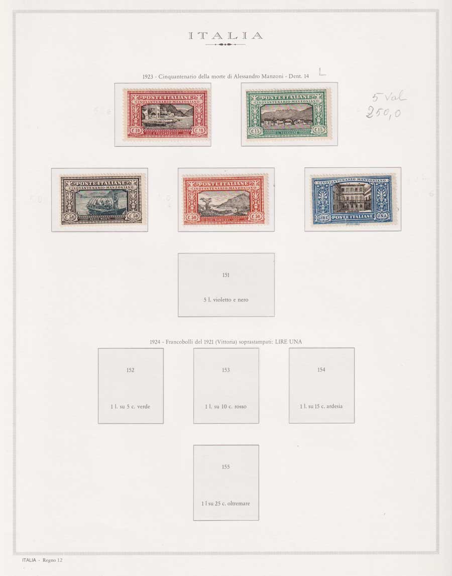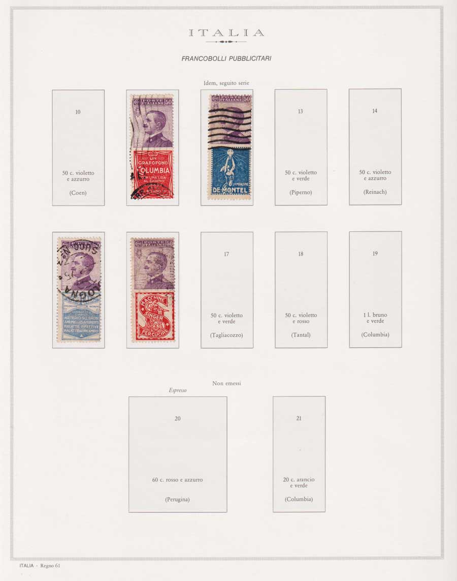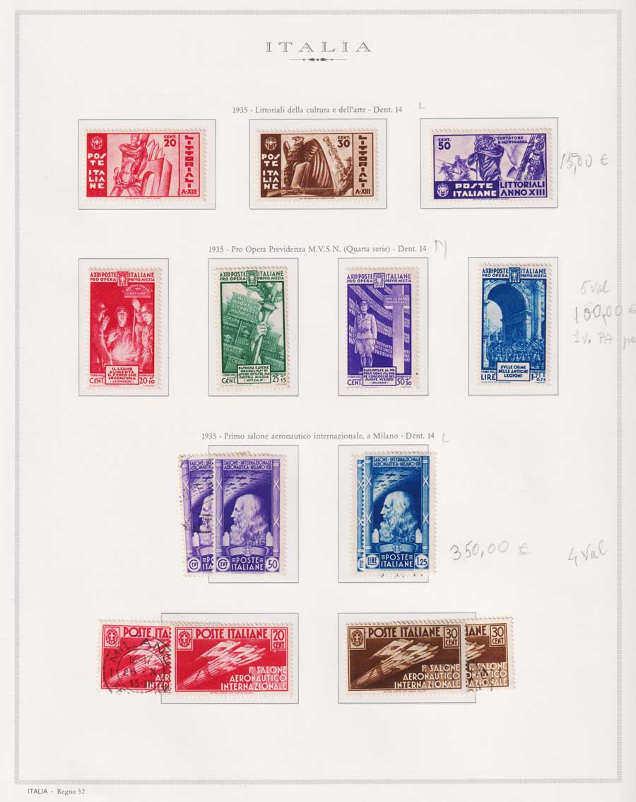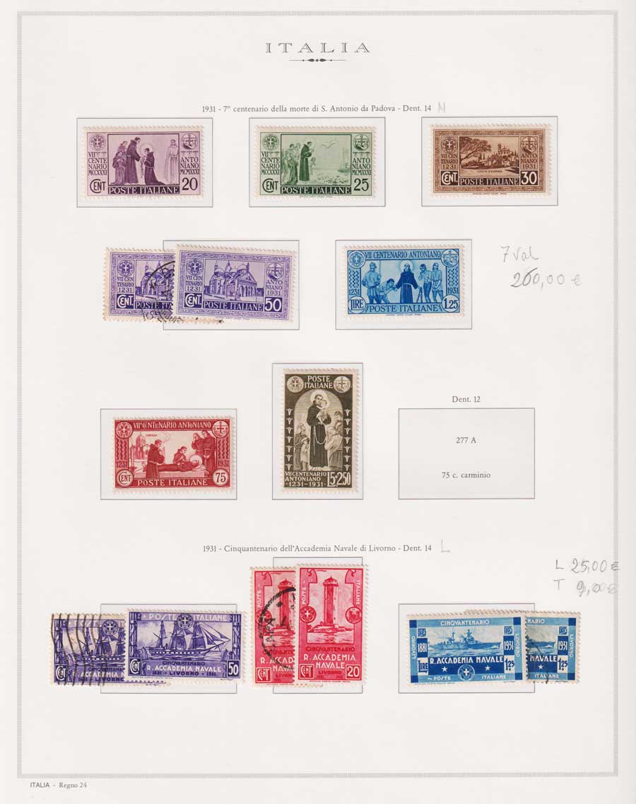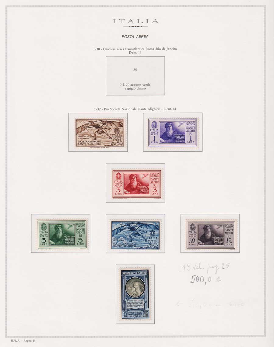COLLEZIONE DEL REGNO D'ITALIA DAL 1862 AL 1943 COMPRESI ALCUNI SERVIZI SU ALBUM CON FOGLI MARINI COMPRESA CUSTODIA. TUTTI I FRANCOBOLLI PRESENTI NELLA RACCOLTA SONO VISIBILI NELLE SCANSIONI, SONO IN OTTIMO STATO DI CONSERVAZIONE E PREVALENTEMENTE CON GOMMA ORIGINALE (CONTRASSEGNATI DALLA LETTERA L). I FRANCOBOLLI O LE SERIE CONTRASSEGNATE CON LA LETTERA “N” SONO DA RITENERSI CON GOMMA INTEGRA SENZA TRACCIA DI LINGUELLA.