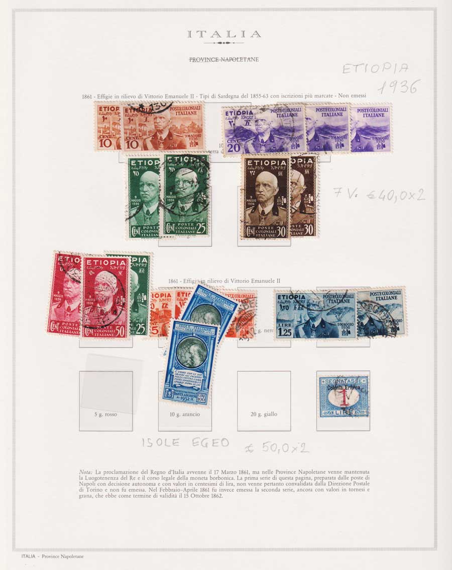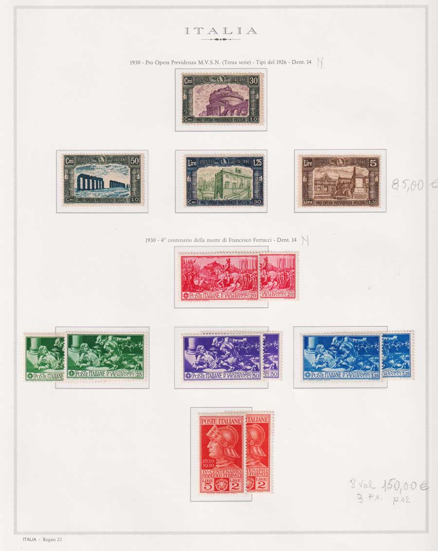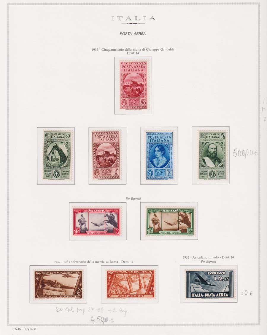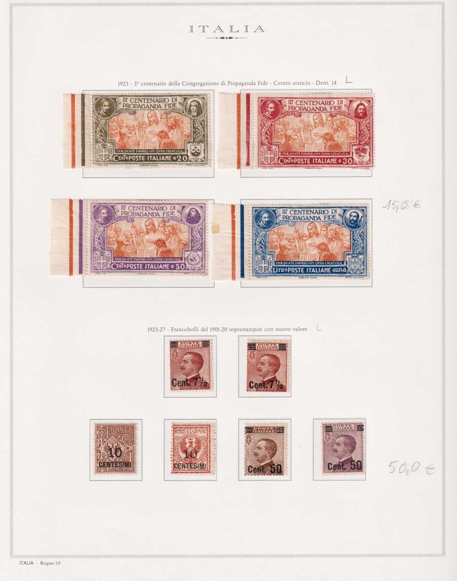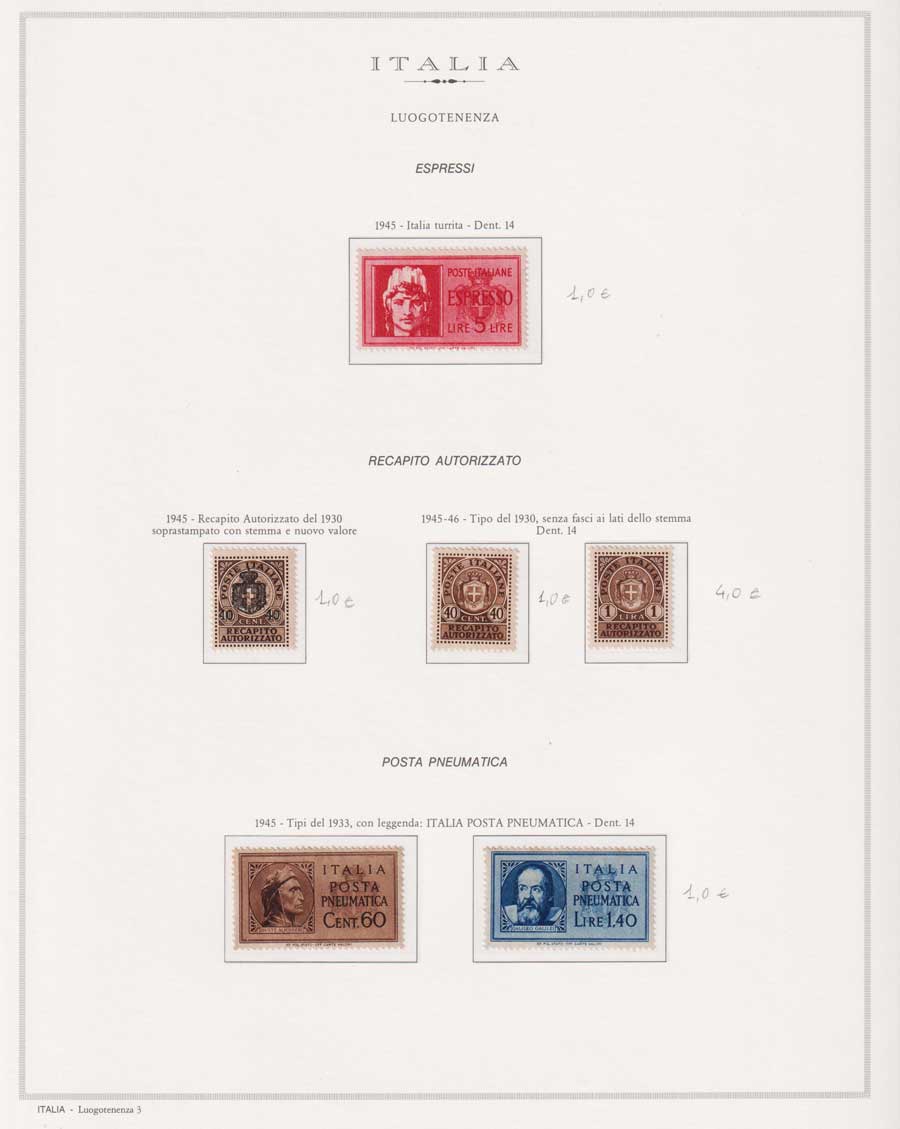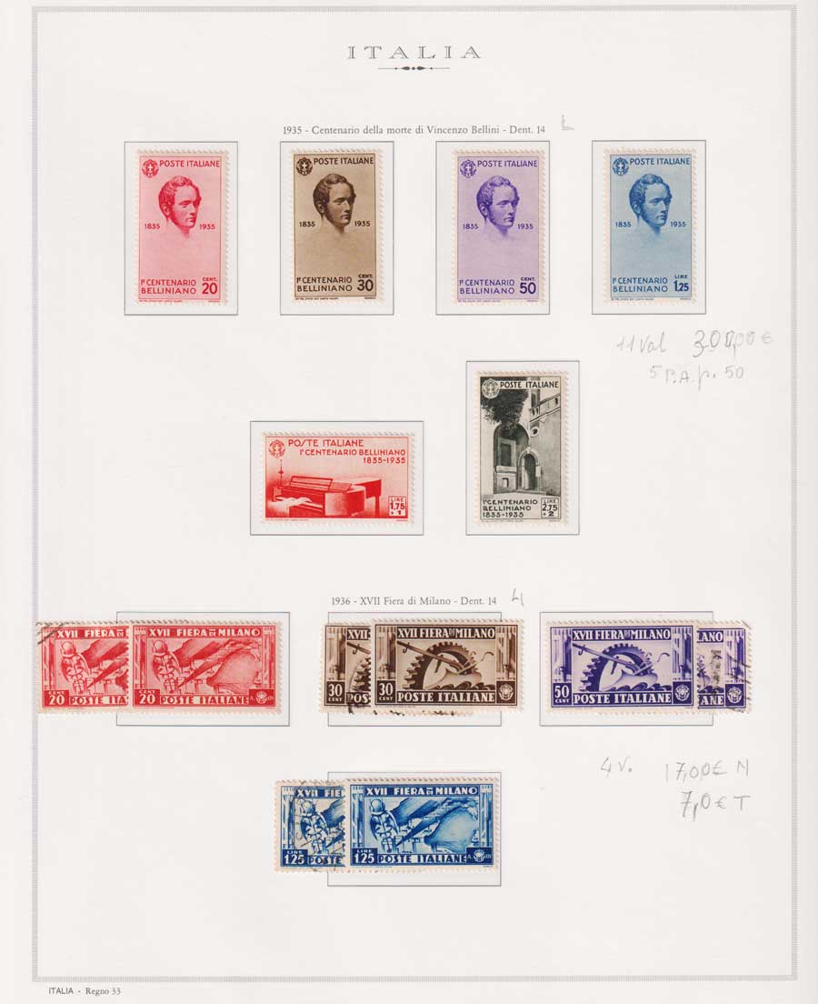 COLLEZIONE DEL REGNO D'ITALIA DAL 1862 AL 1943 COMPRESI ALCUNI SERVIZI SU ALBUM CON FOGLI MARINI COMPRESA CUSTODIA. TUTTI I FRANCOBOLLI PRESENTI NELLA RACCOLTA SONO VISIBILI NELLE SCANSIONI, SONO IN OTTIMO STATO DI CONSERVAZIONE E PREVALENTEMENTE CON GOMMA ORIGINALE (CONTRASSEGNATI DALLA LETTERA L). I FRANCOBOLLI O LE SERIE CONTRASSEGNATE CON LA LETTERA “N” SONO DA RITENERSI CON GOMMA INTEGRA SENZA TRACCIA DI LINGUELLA.