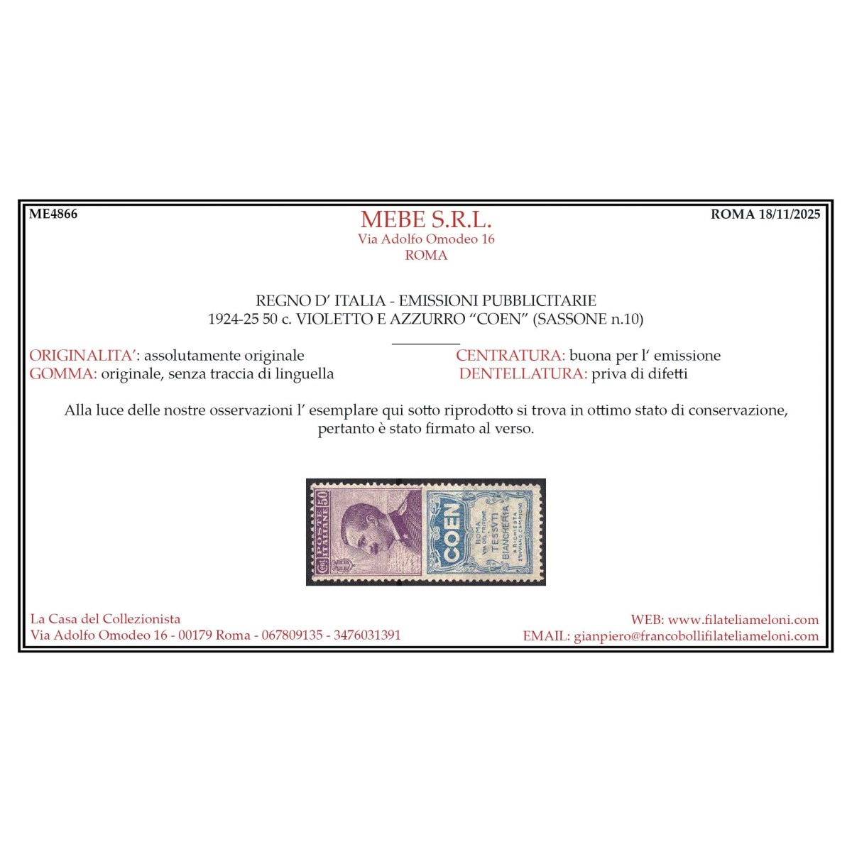 REGNO D'ITALIA 1924 PUBBLICITARI 15 C. COLUMBIA...