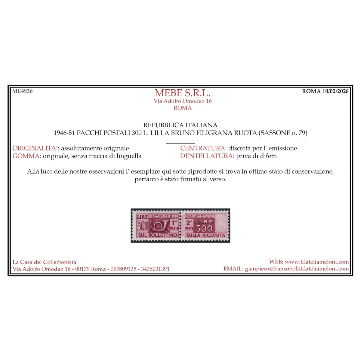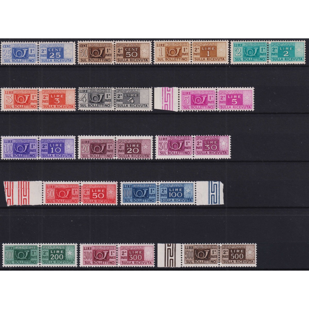 REPUBBLICA 1946-51 PACCHI POSTALI RUOTA COMPRESSO 300 L. G.I MNH** CERT.
