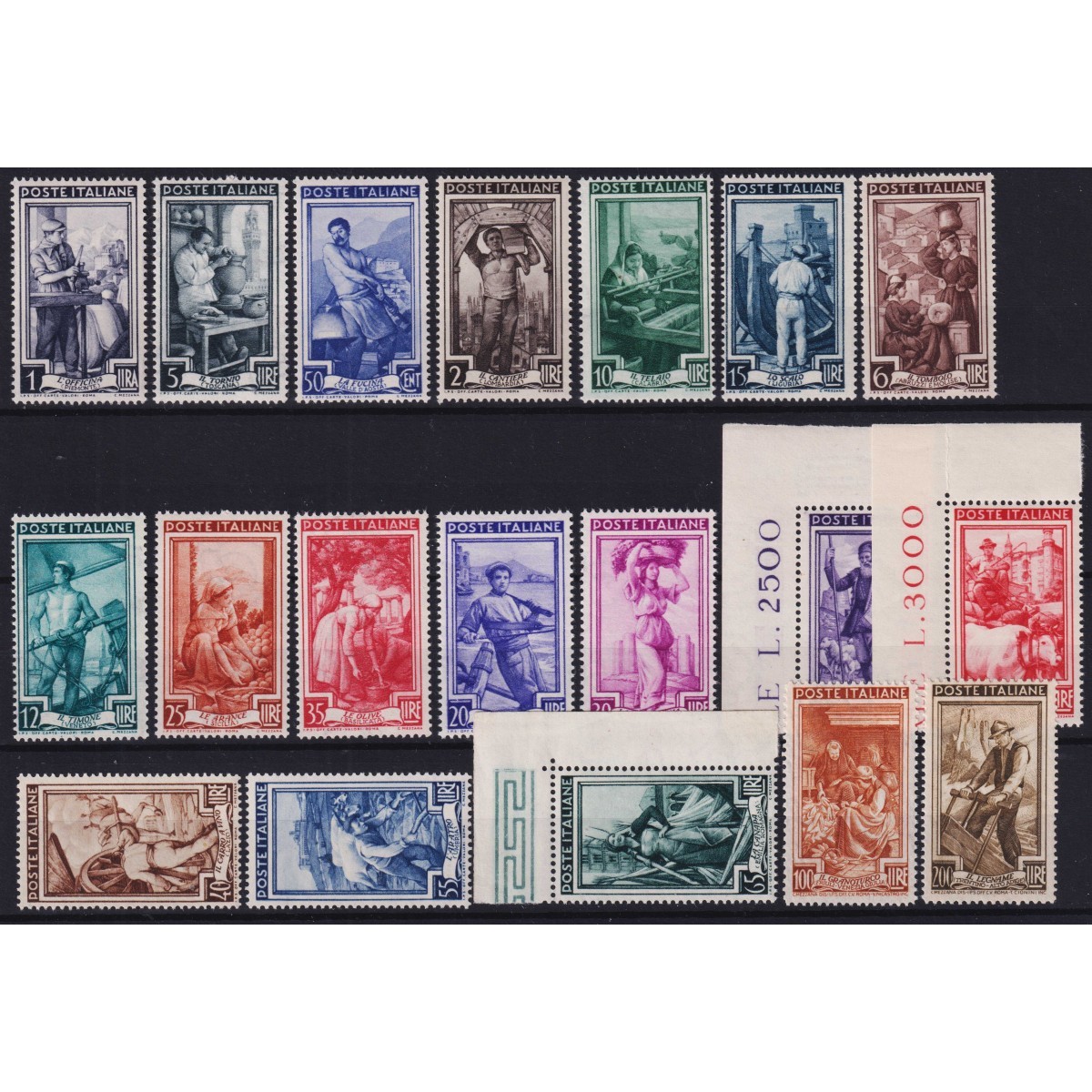 REPUBBLICA 1950 ITALIA AL LAVORO 19 VALORI G.I...