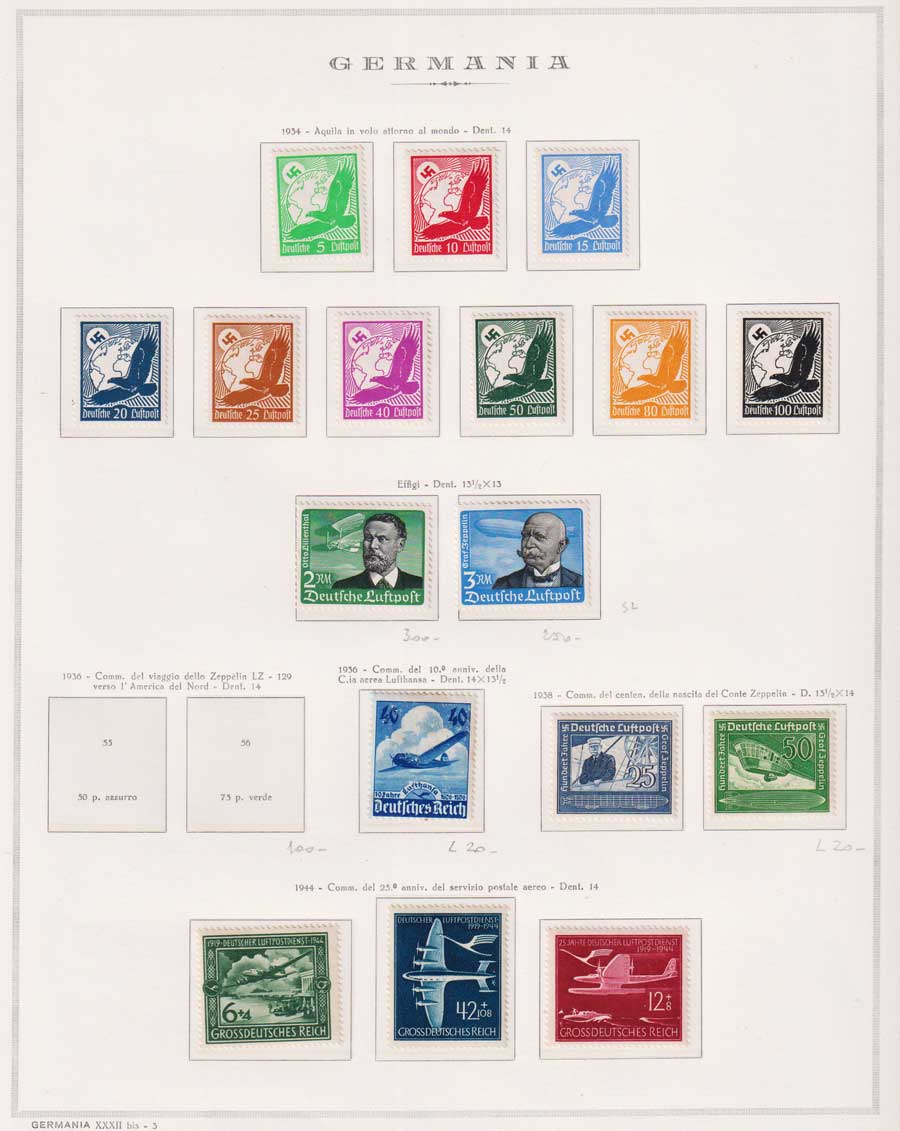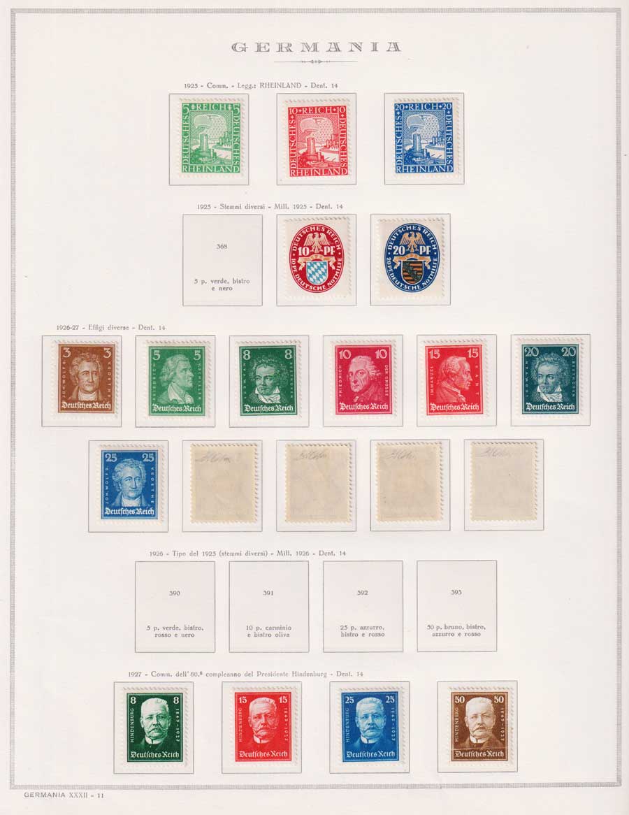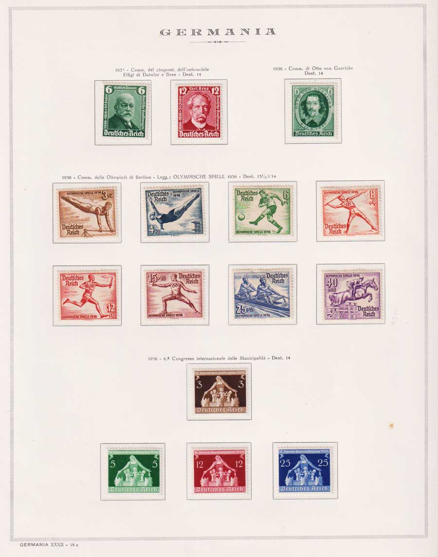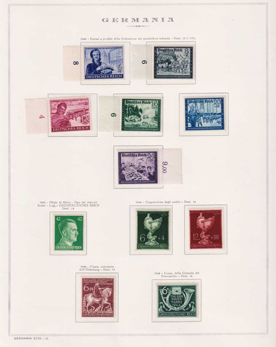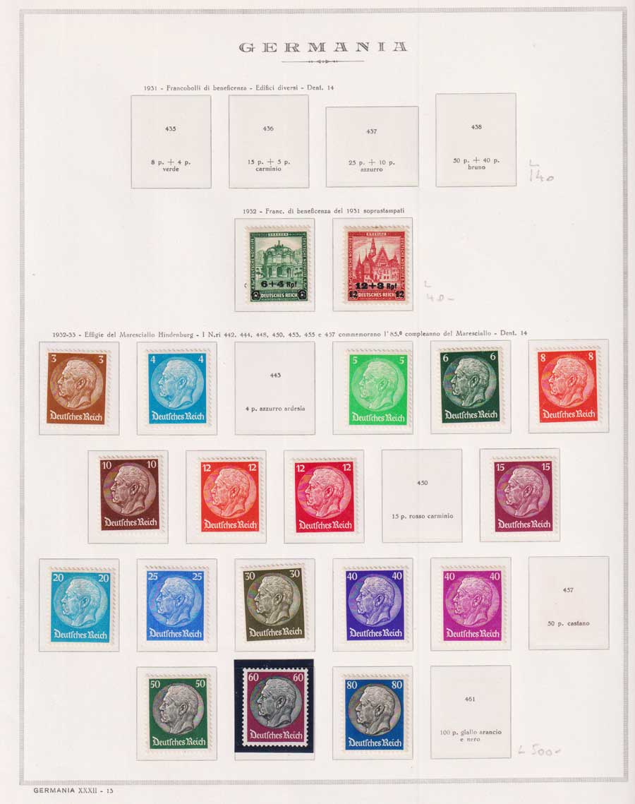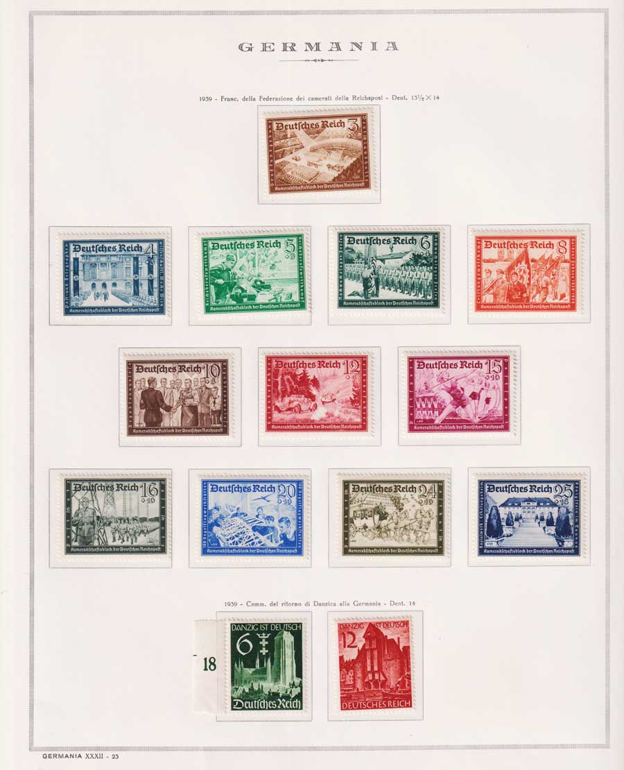 COLLEZIONE AVANZATA DELLA GERMANIA COMPRESI ANCHE ALCUNI ANTICHI STATI E FOGLIETTI SU FOGLI D'ALBUM MARINI. TUTTI I FRANCOBOLLI PRESENTI NELLA RACCOLTA SONO VISIBILI NELLE SCANSIONI, SONO IN OTTIMO STATO DI CONSERVAZIONE E PREVALENTEMENTE CON GOMMA ORIGINALE. DAL 1940 ALCUNE SERIETTE CON GOMMA INTEGRA ORIGINALE. 3 CERTIFICATI.