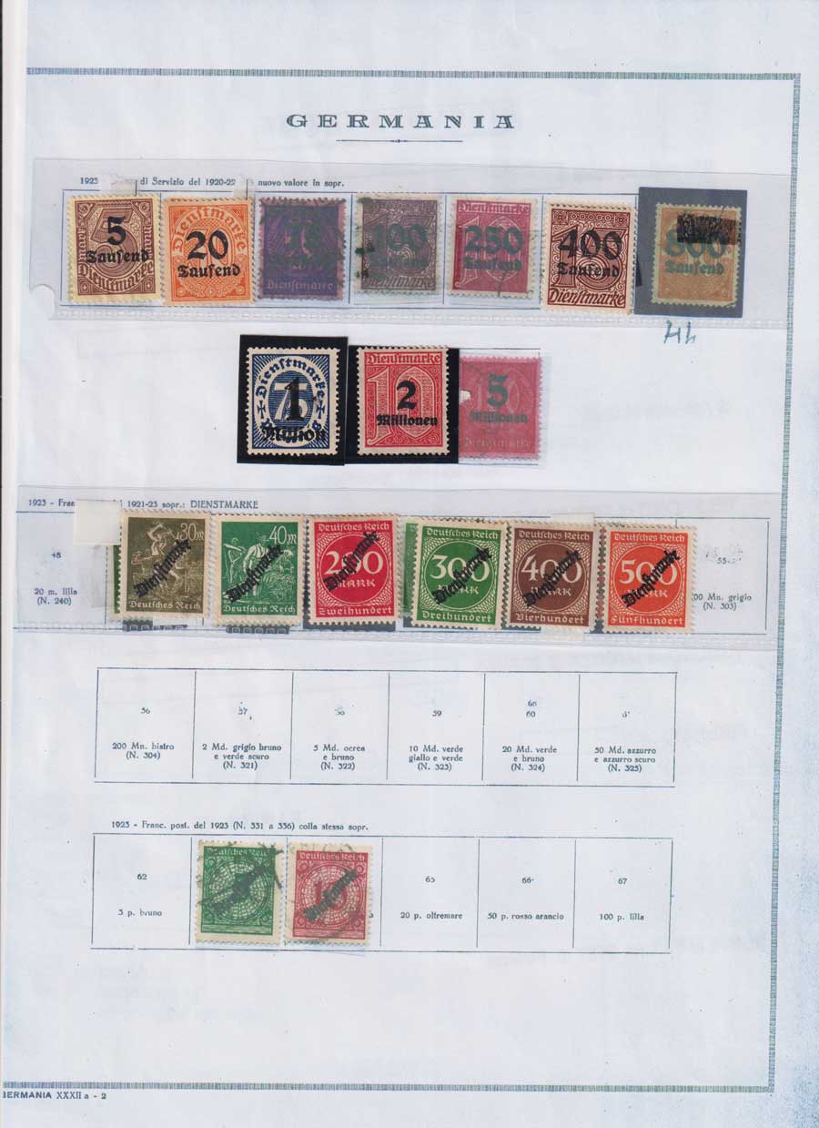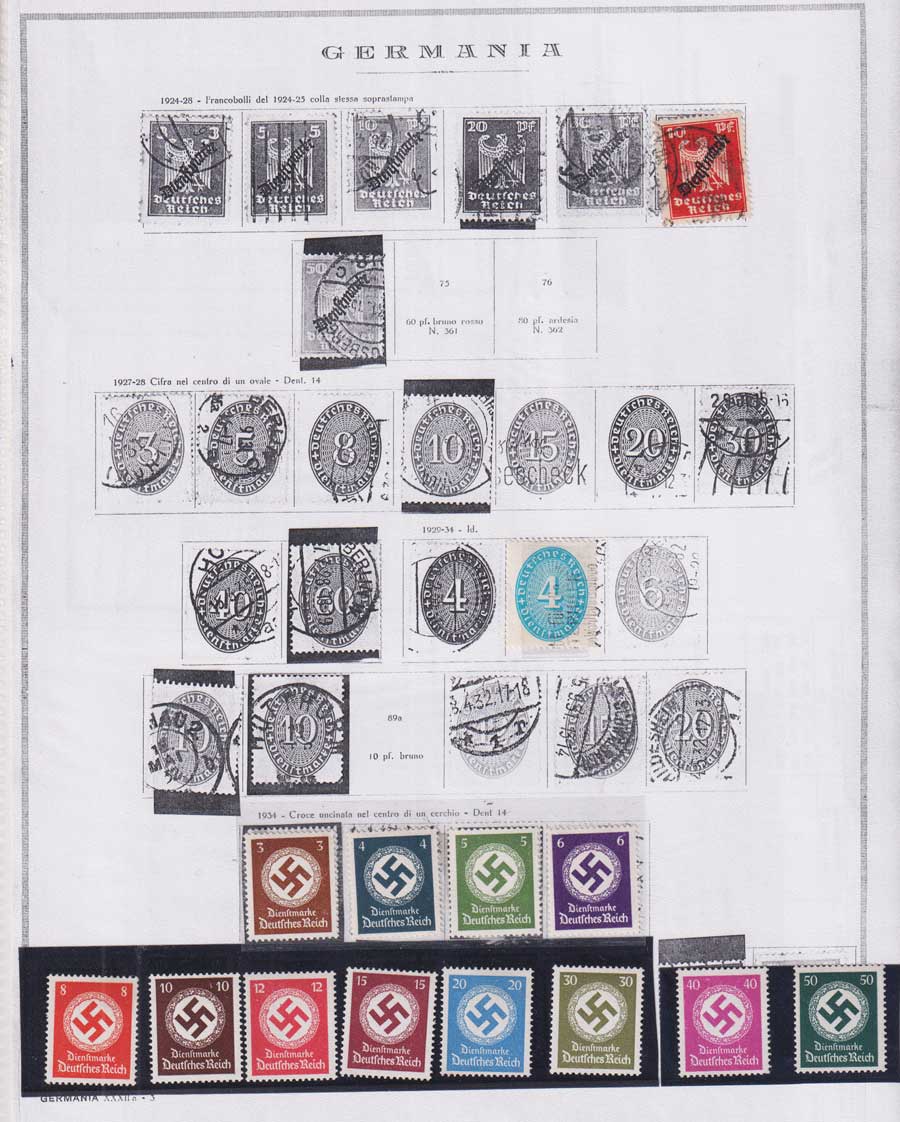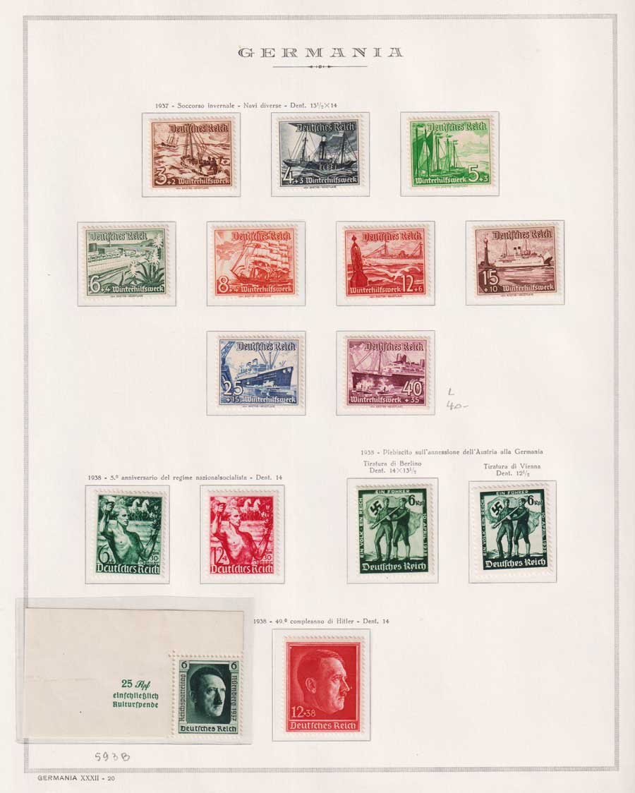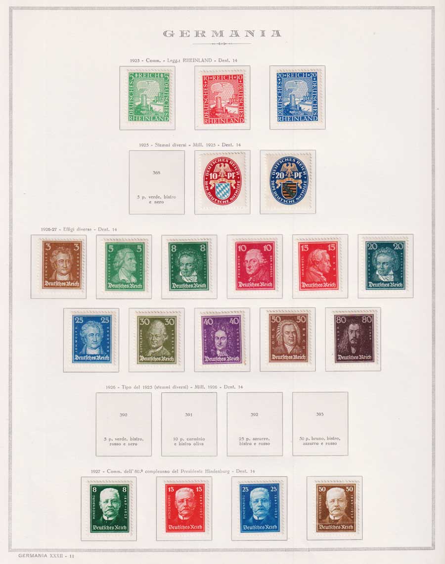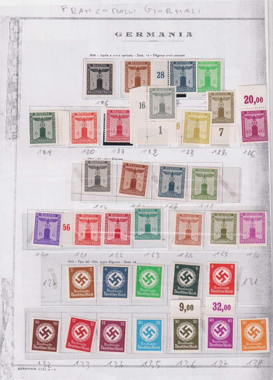 COLLEZIONE AVANZATA DELLA GERMANIA COMPRESI ANCHE ALCUNI ANTICHI STATI E FOGLIETTI SU FOGLI D'ALBUM MARINI. TUTTI I FRANCOBOLLI PRESENTI NELLA RACCOLTA SONO VISIBILI NELLE SCANSIONI, SONO IN OTTIMO STATO DI CONSERVAZIONE E PREVALENTEMENTE CON GOMMA ORIGINALE. DAL 1940 ALCUNE SERIETTE CON GOMMA INTEGRA ORIGINALE. 3 CERTIFICATI.