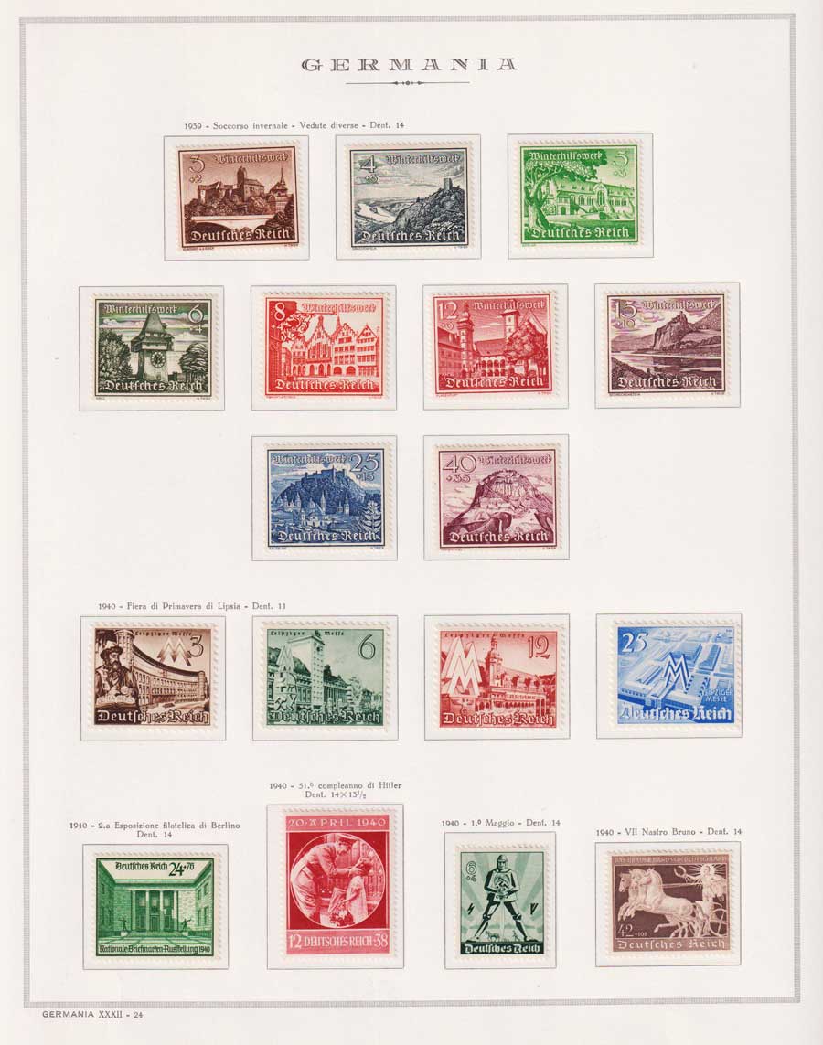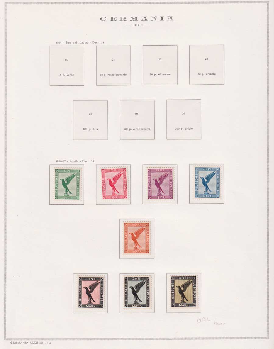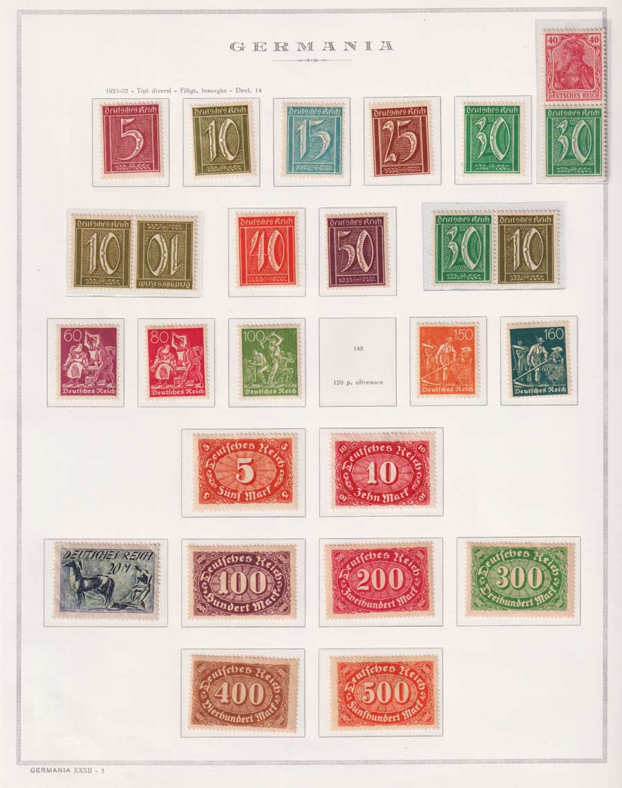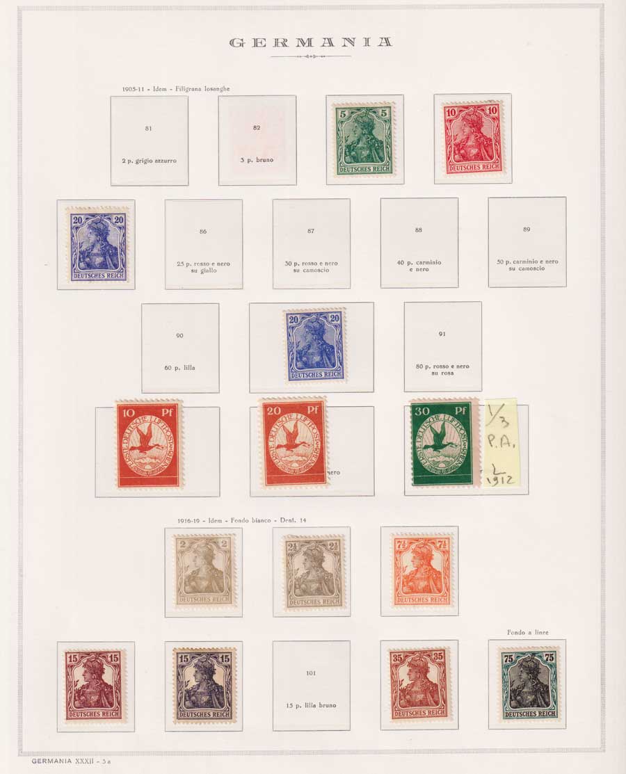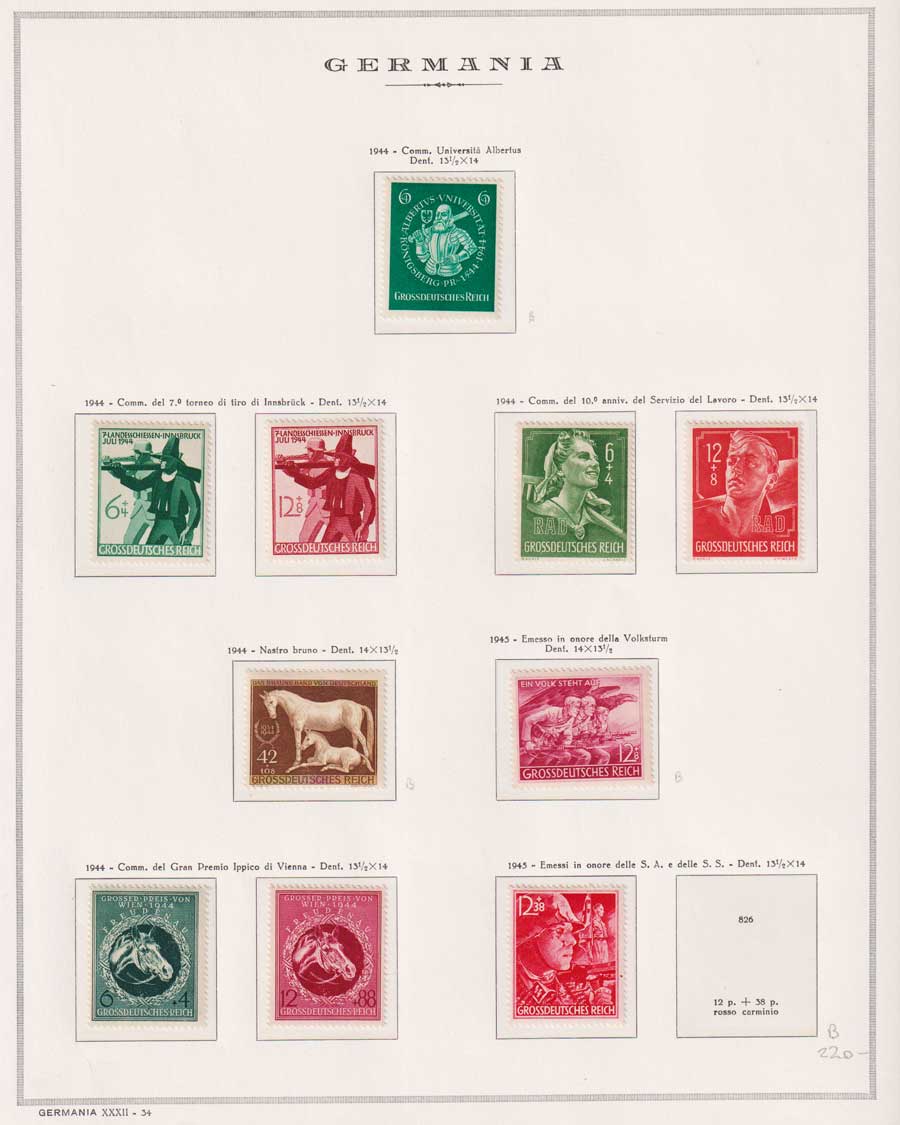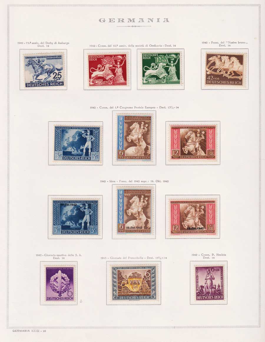 COLLEZIONE AVANZATA DELLA GERMANIA COMPRESI ANCHE ALCUNI ANTICHI STATI E FOGLIETTI SU FOGLI D'ALBUM MARINI. TUTTI I FRANCOBOLLI PRESENTI NELLA RACCOLTA SONO VISIBILI NELLE SCANSIONI, SONO IN OTTIMO STATO DI CONSERVAZIONE E PREVALENTEMENTE CON GOMMA ORIGINALE. DAL 1940 ALCUNE SERIETTE CON GOMMA INTEGRA ORIGINALE. 3 CERTIFICATI.