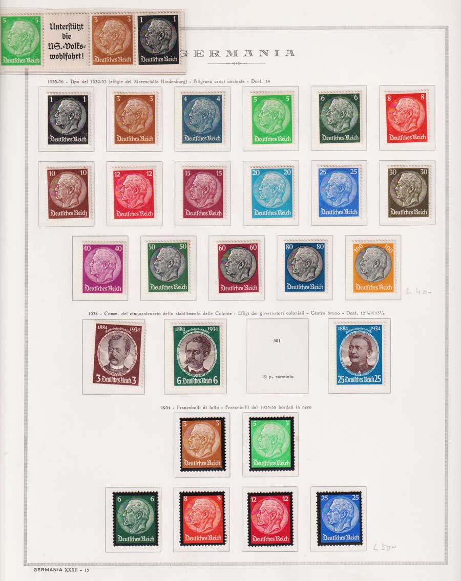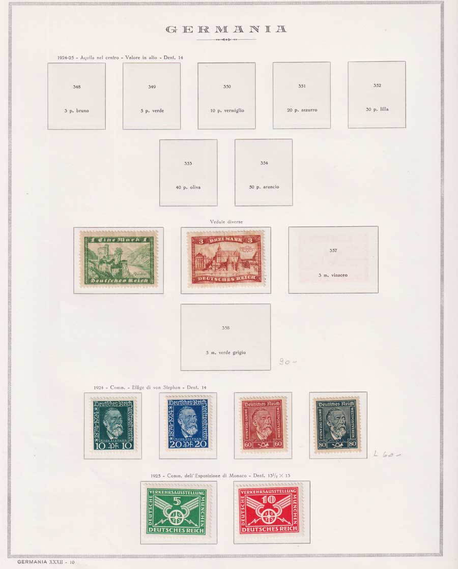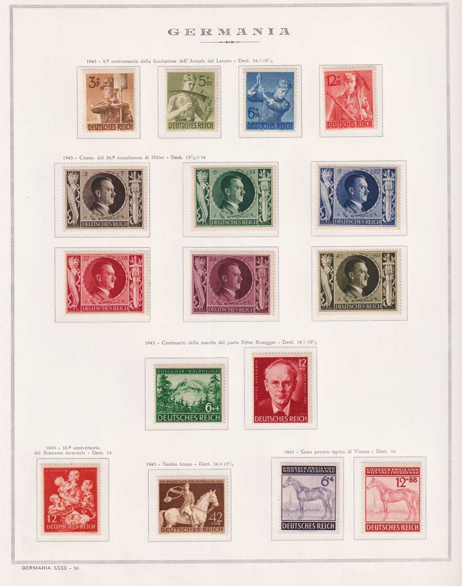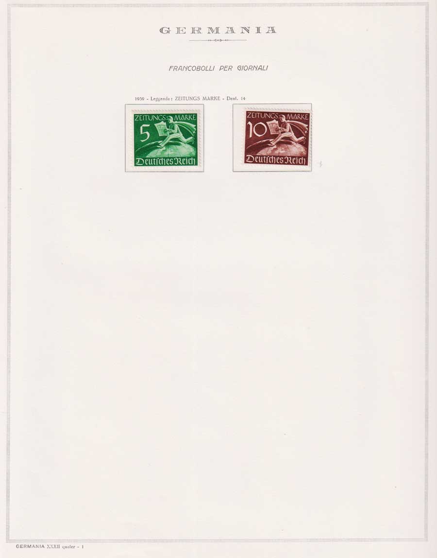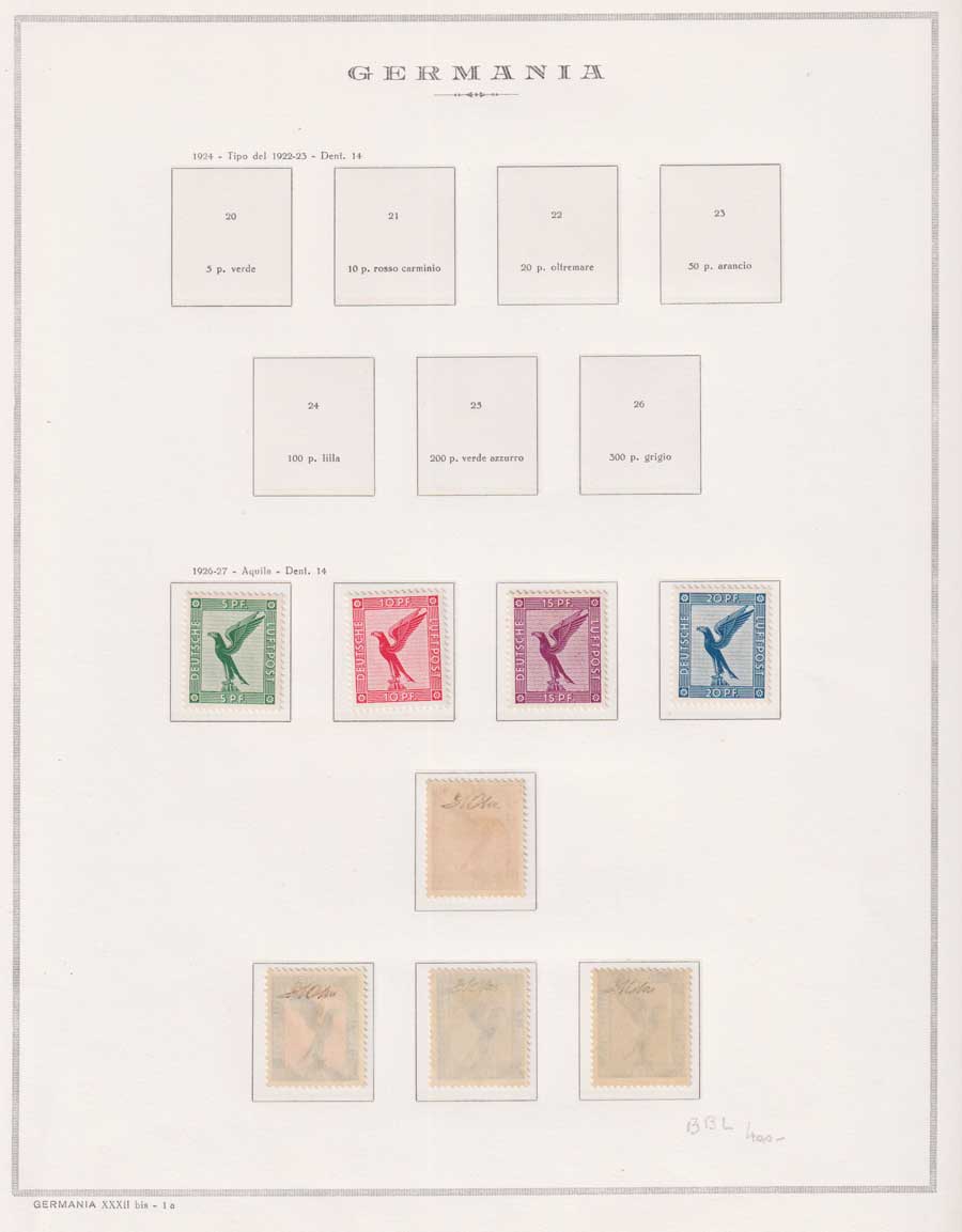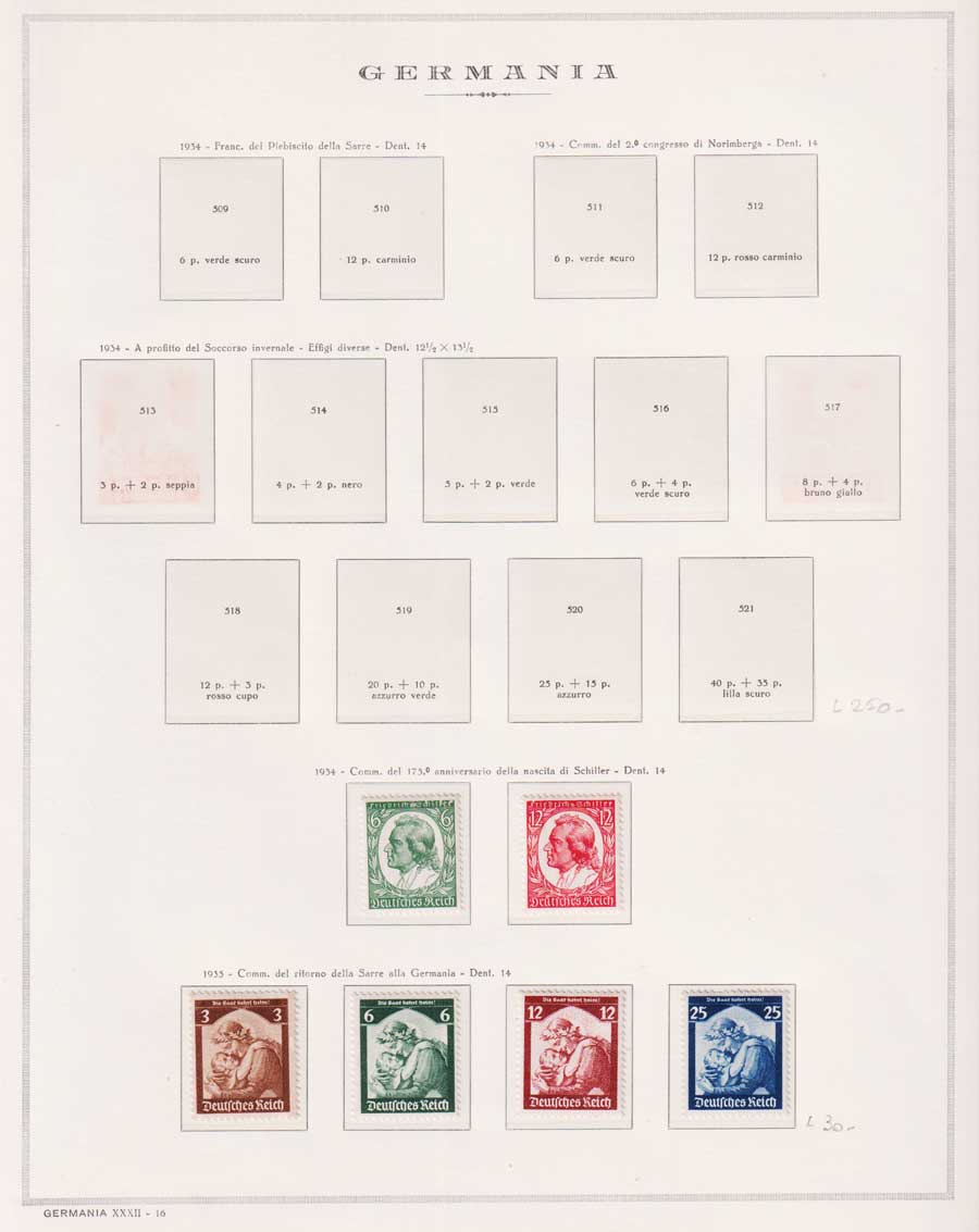 COLLEZIONE AVANZATA DELLA GERMANIA COMPRESI ANCHE ALCUNI ANTICHI STATI E FOGLIETTI SU FOGLI D'ALBUM MARINI. TUTTI I FRANCOBOLLI PRESENTI NELLA RACCOLTA SONO VISIBILI NELLE SCANSIONI, SONO IN OTTIMO STATO DI CONSERVAZIONE E PREVALENTEMENTE CON GOMMA ORIGINALE. DAL 1940 ALCUNE SERIETTE CON GOMMA INTEGRA ORIGINALE. 3 CERTIFICATI.