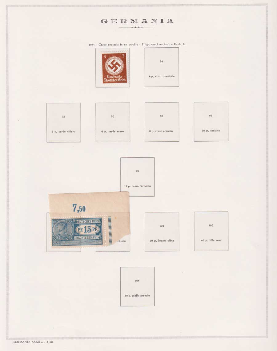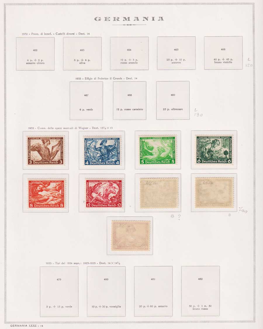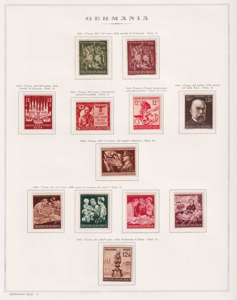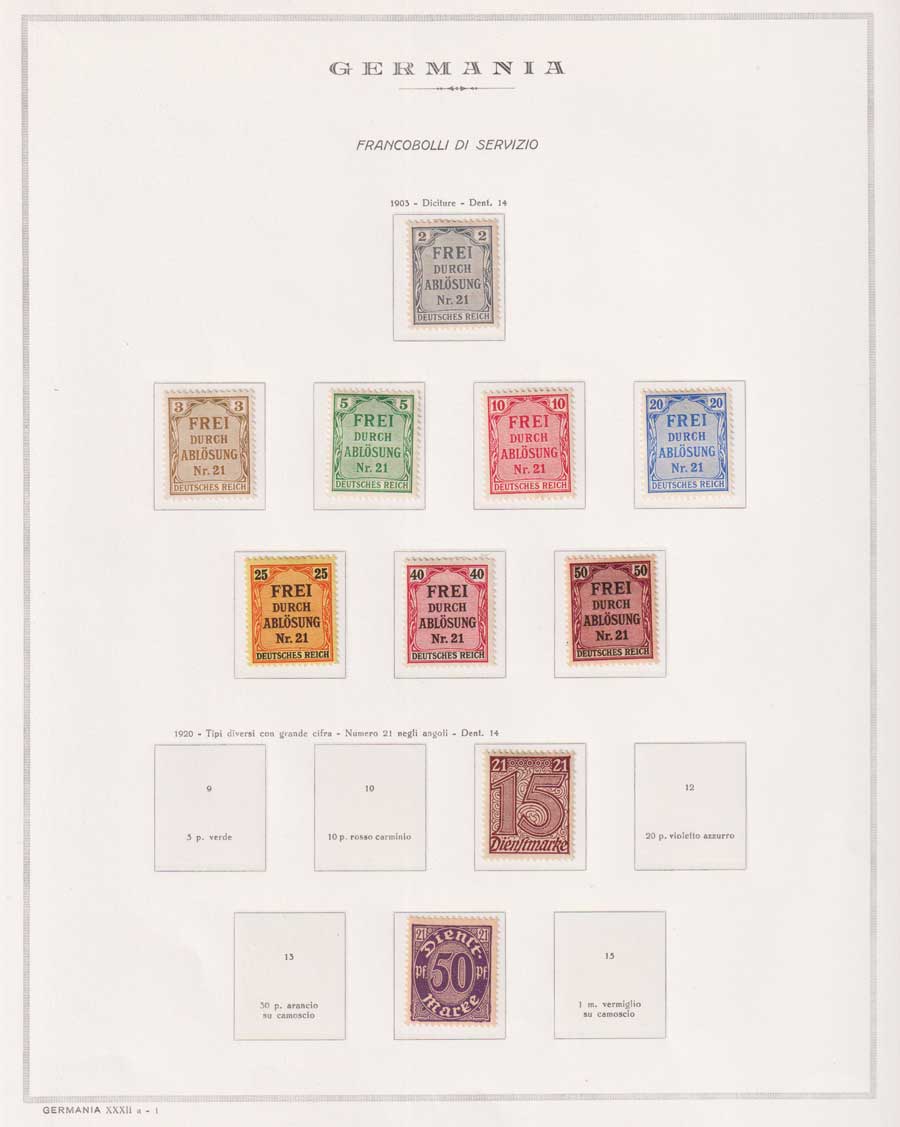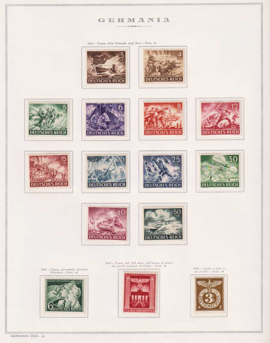 COLLEZIONE AVANZATA DELLA GERMANIA COMPRESI ANCHE ALCUNI ANTICHI STATI E FOGLIETTI SU FOGLI D'ALBUM MARINI. TUTTI I FRANCOBOLLI PRESENTI NELLA RACCOLTA SONO VISIBILI NELLE SCANSIONI, SONO IN OTTIMO STATO DI CONSERVAZIONE E PREVALENTEMENTE CON GOMMA ORIGINALE. DAL 1940 ALCUNE SERIETTE CON GOMMA INTEGRA ORIGINALE. 3 CERTIFICATI.