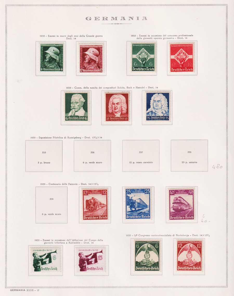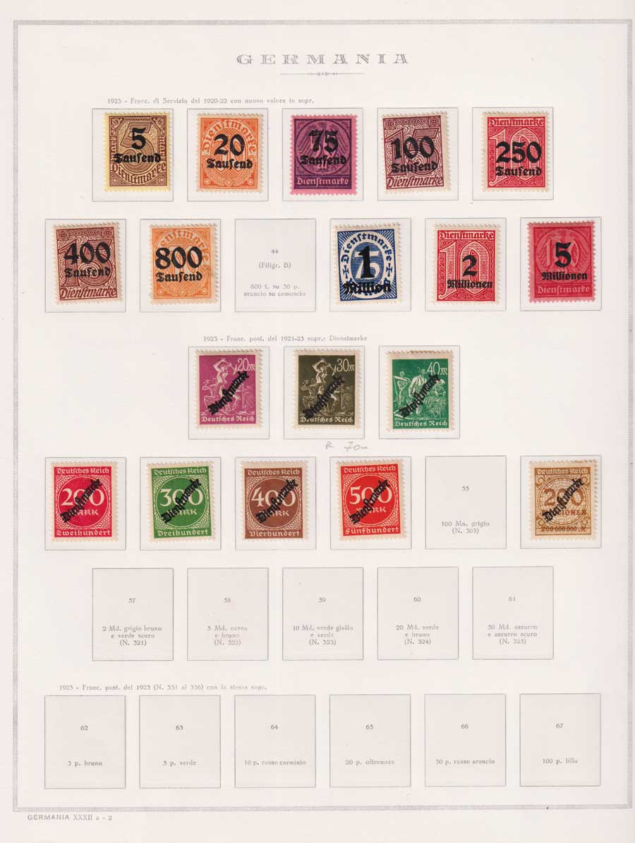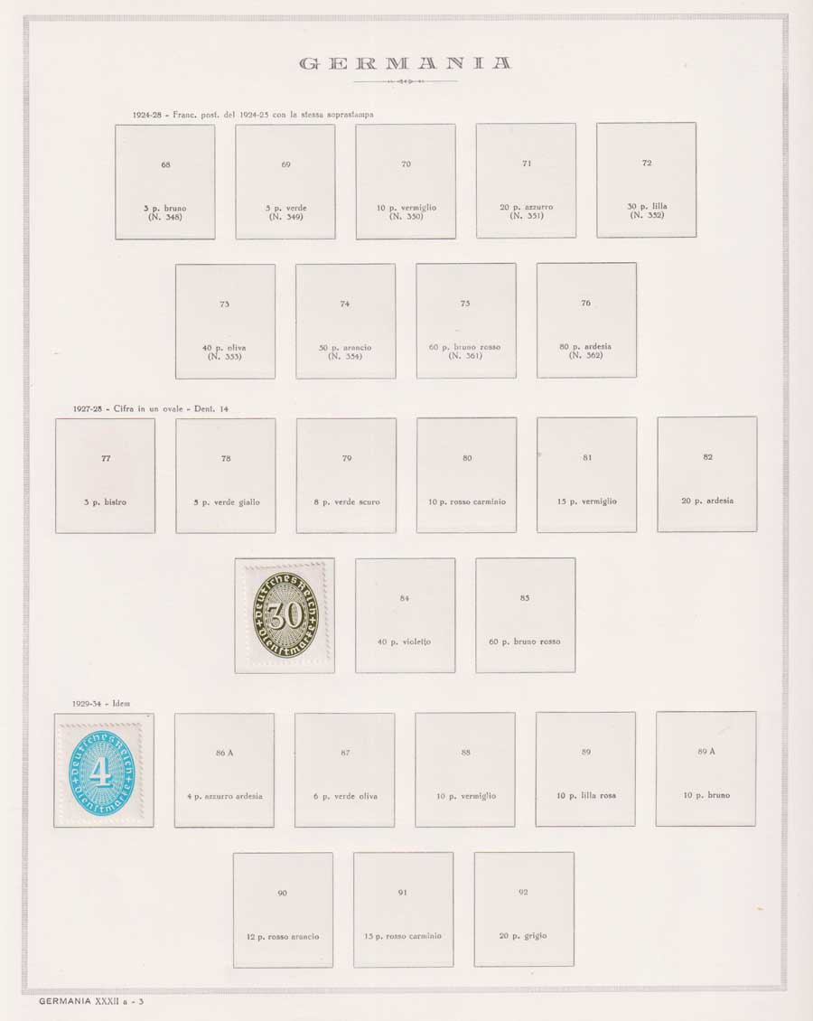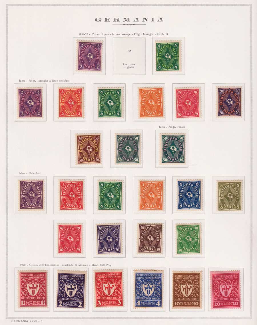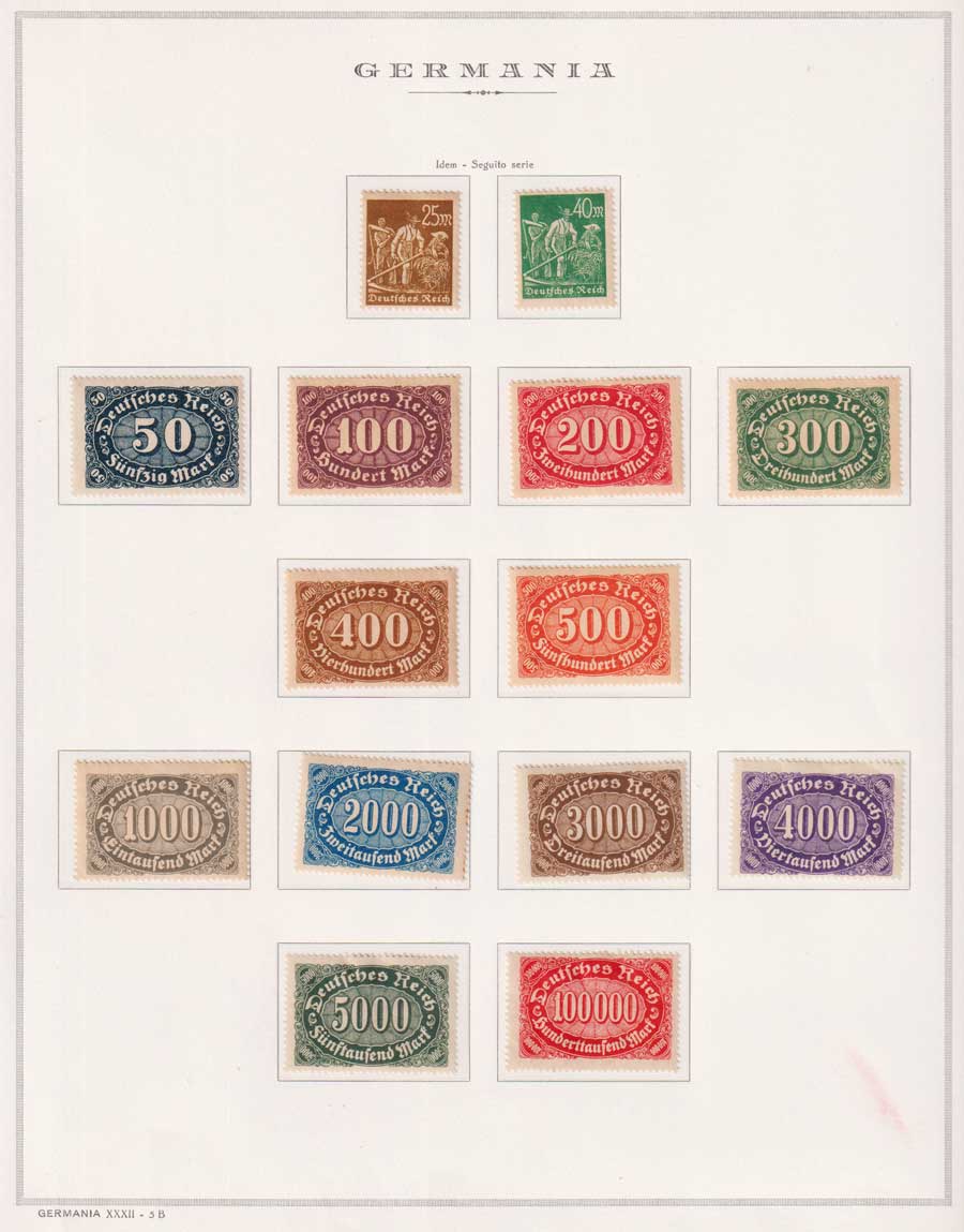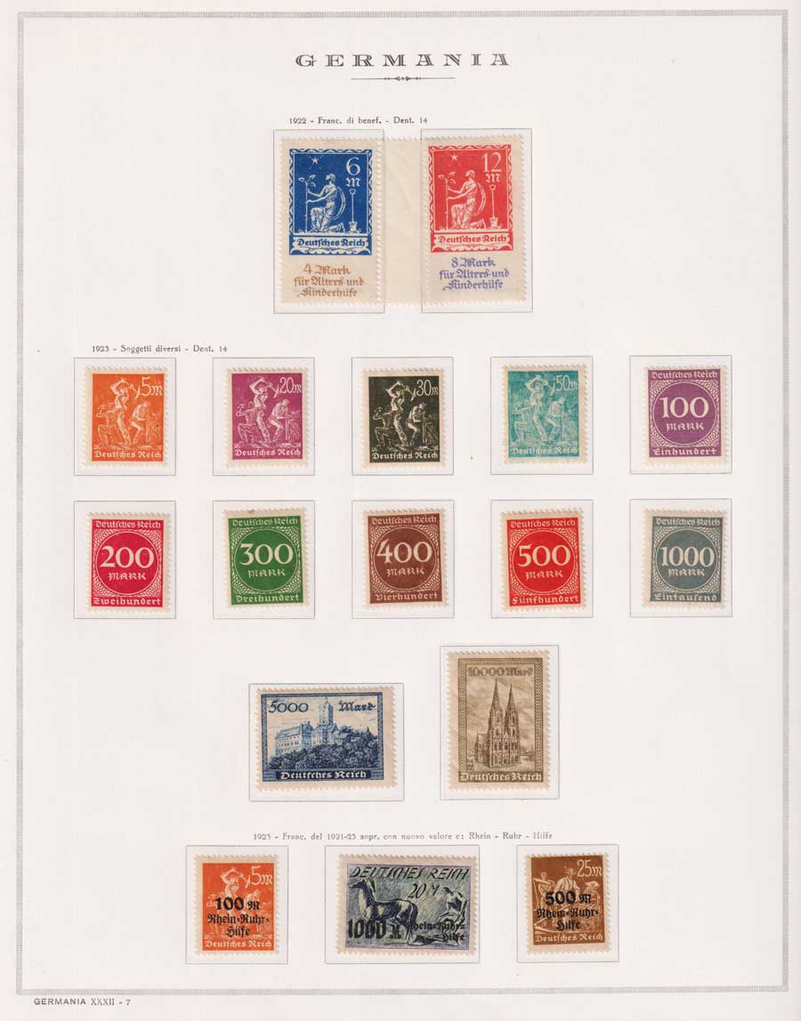 COLLEZIONE AVANZATA DELLA GERMANIA COMPRESI ANCHE ALCUNI ANTICHI STATI E FOGLIETTI SU FOGLI D'ALBUM MARINI. TUTTI I FRANCOBOLLI PRESENTI NELLA RACCOLTA SONO VISIBILI NELLE SCANSIONI, SONO IN OTTIMO STATO DI CONSERVAZIONE E PREVALENTEMENTE CON GOMMA ORIGINALE. DAL 1940 ALCUNE SERIETTE CON GOMMA INTEGRA ORIGINALE. 3 CERTIFICATI.