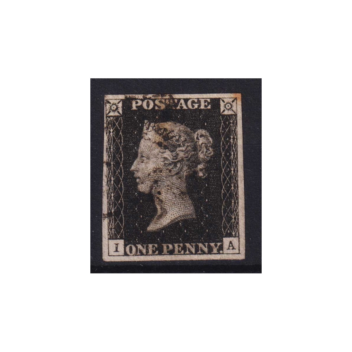 GRAN BRETAGNA 1840 1 PENNY NERO BLACK N.1 US. MARGINATO CERT.