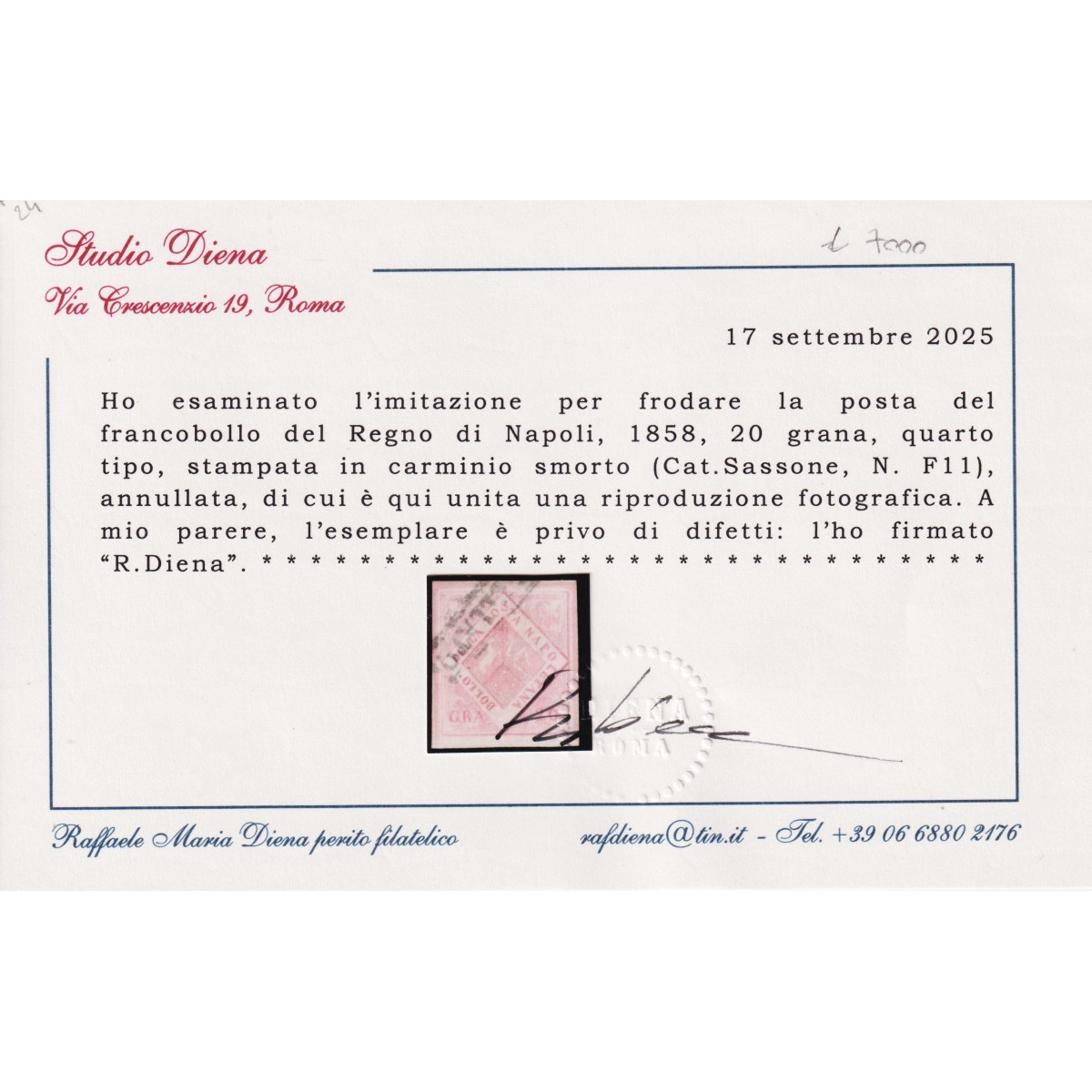 NAPOLI 1859-61 20 GRANA CARMINIO FALSO VI TIPO...