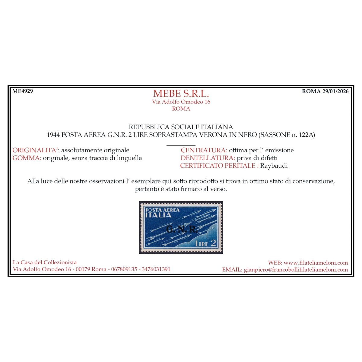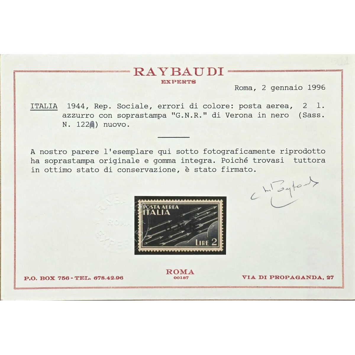 R.S.I. SOCIALE 1944 SAGGIO 1,25 LIRE TIR....