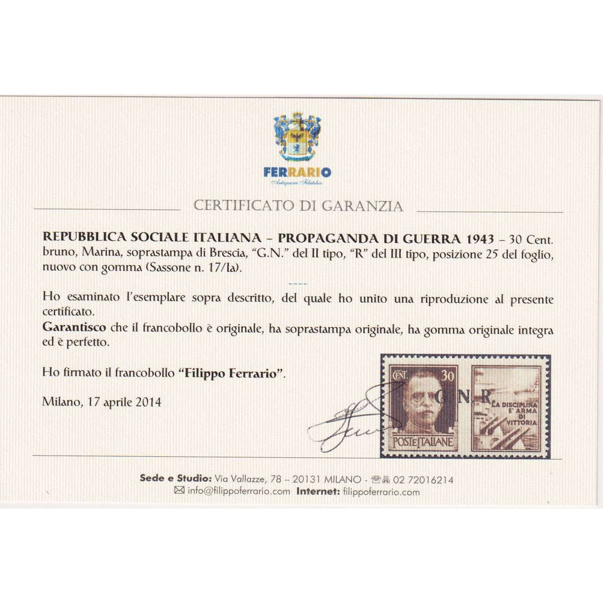 R.S.I 1944 P/A SAGGIO ESPRESSO 2 LIRE N.P16 G.I...