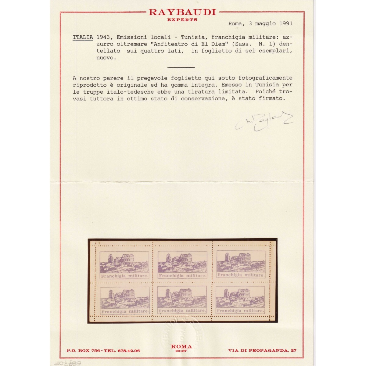 R.S.I 1944 P/A SAGGIO 80 C. N.P11 G.I MNH** CERT.