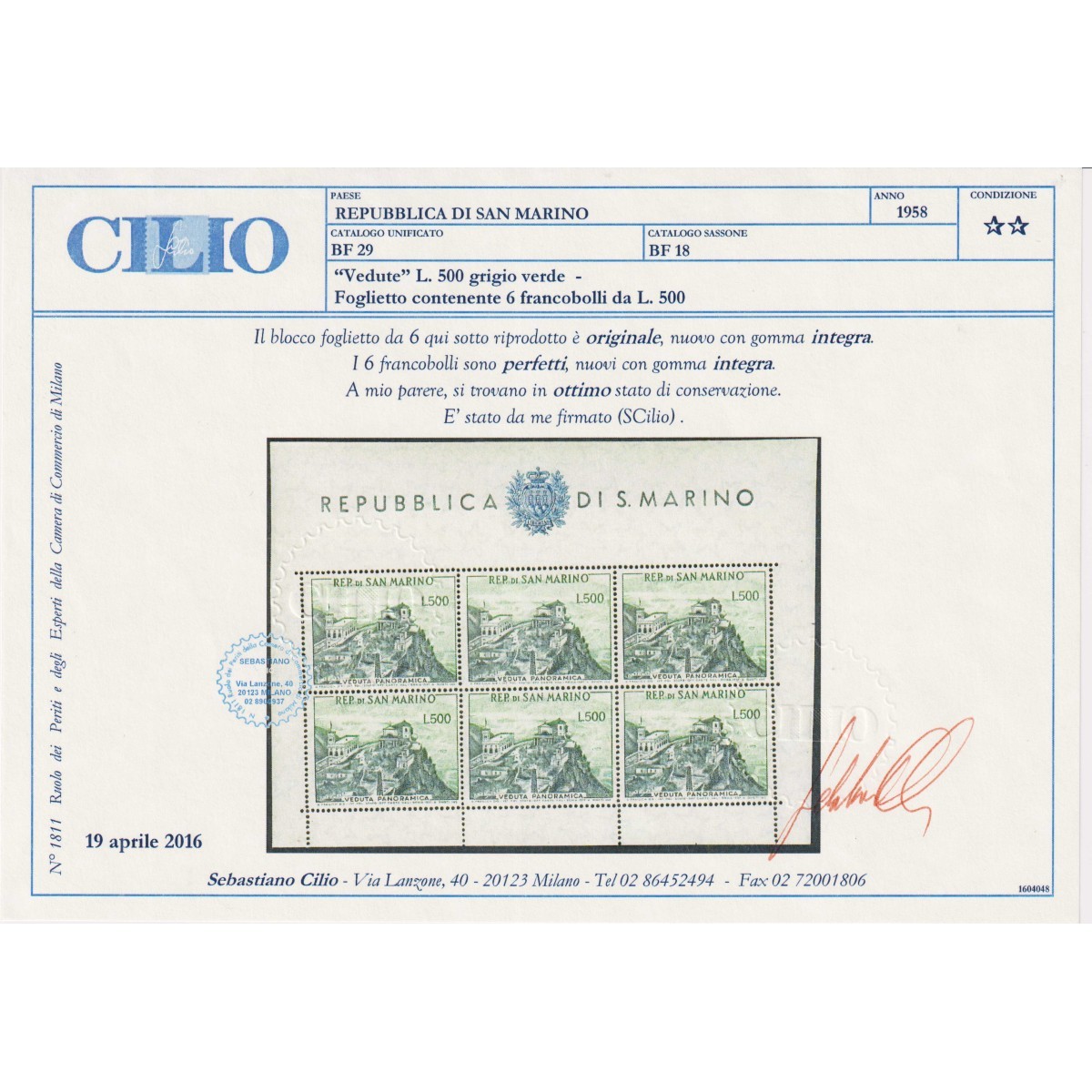 SAN MARINO 1948 MINIFOGLIO LAVORO N.9 G.I MNH**...