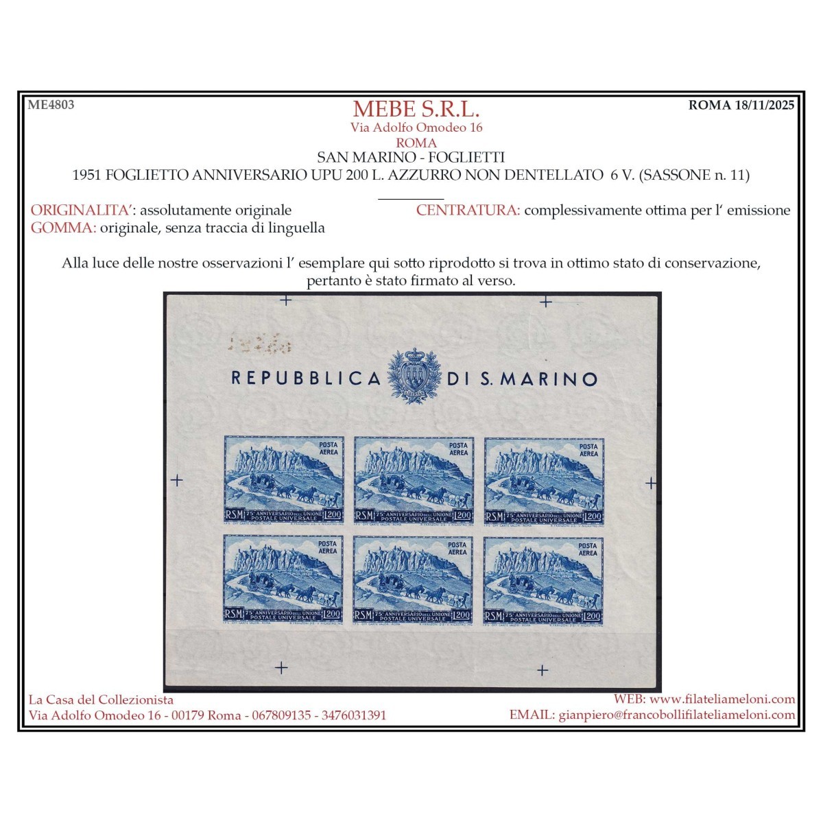 SAN MARINO 1931 POSTA AEREA VEDUTE 10 V. G.I...