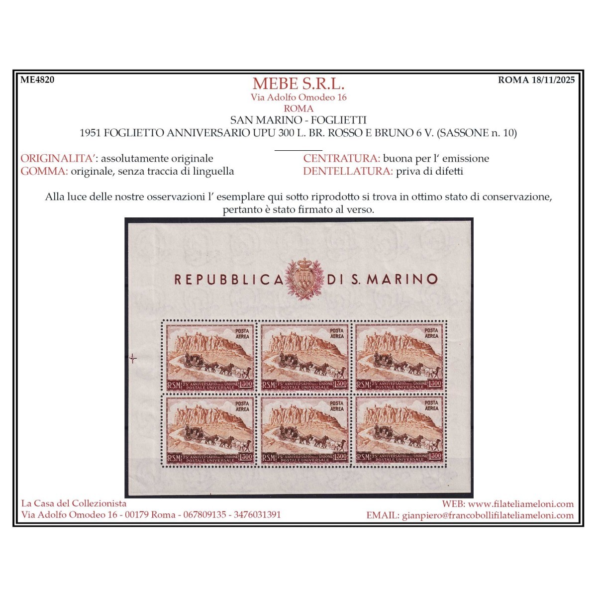 SAN MARINO 1937 FOGLIETTO INDIPENDENZA 5 L. N.1...