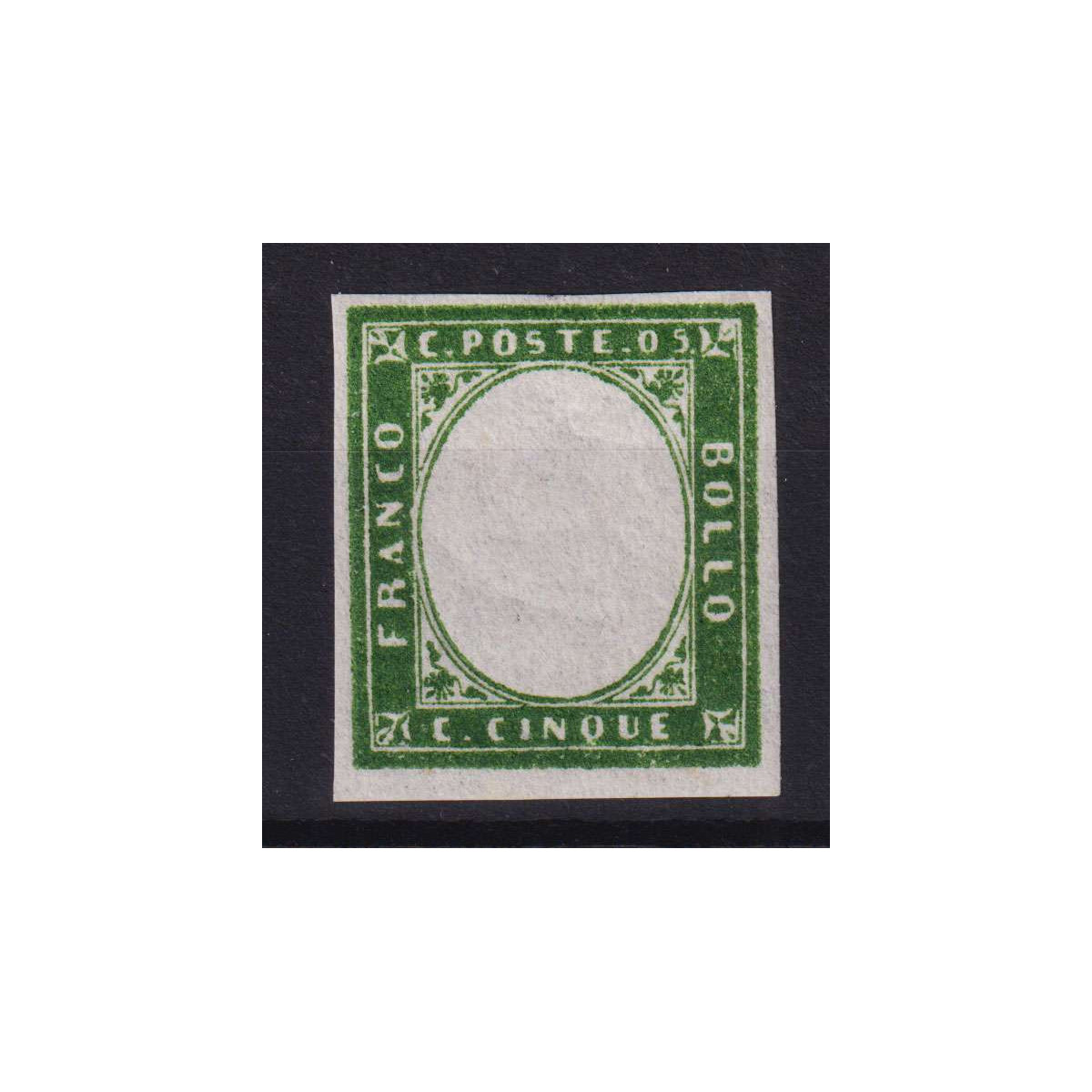 SARDEGNA 1855/63 5 C. VARIETA' SENZA EFFIGIE G.I MNH** CERT.