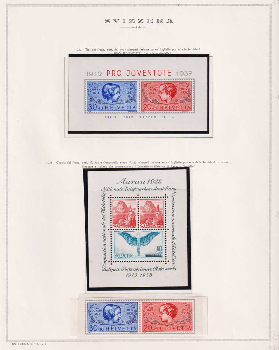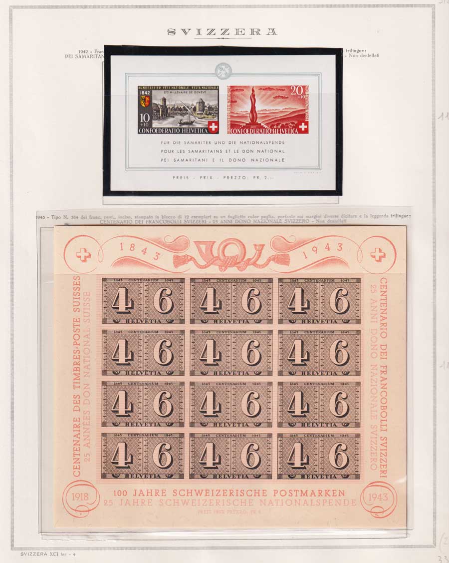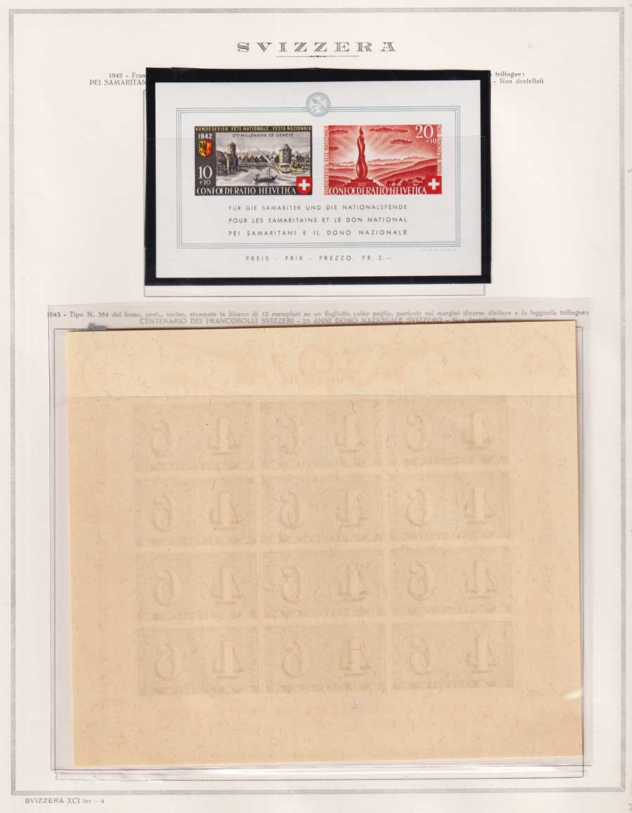 PARTE DI COLLEZIONE DI SVIZZERA SU FOGLI MARINI E TUTTI I FRANCOBOLLI PRESENTI NELLA RACCOLTA SONO VISIBILI NELLE SCANSIONI, SONO IN OTTIMO STATO DI CONSERVAZIONE E CON GOMMA INTEGRA ORIGINALE. PRESENTI 2 CERTIFICATI.