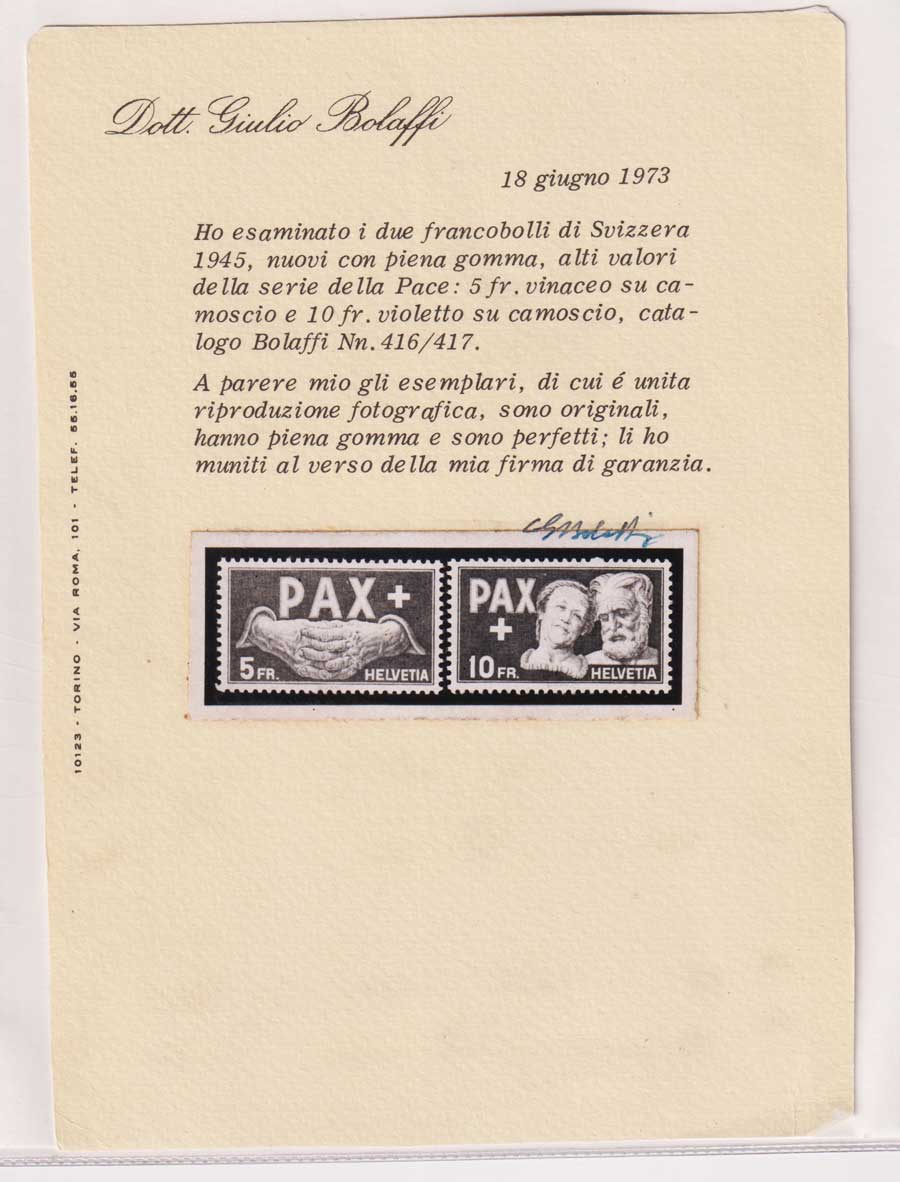COLLEZIONE SVIZZERA DAL 1941 G.I MNH** 2 CERT. COME FOTO IN DESCRIZIONE