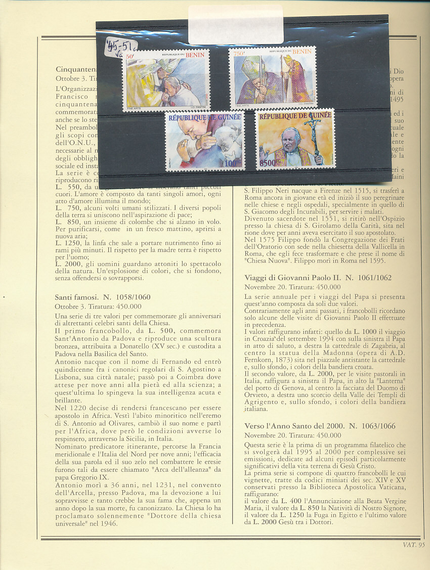 VATICANO 1947 P/A PIO XII QUARTINE SOGGETTI...